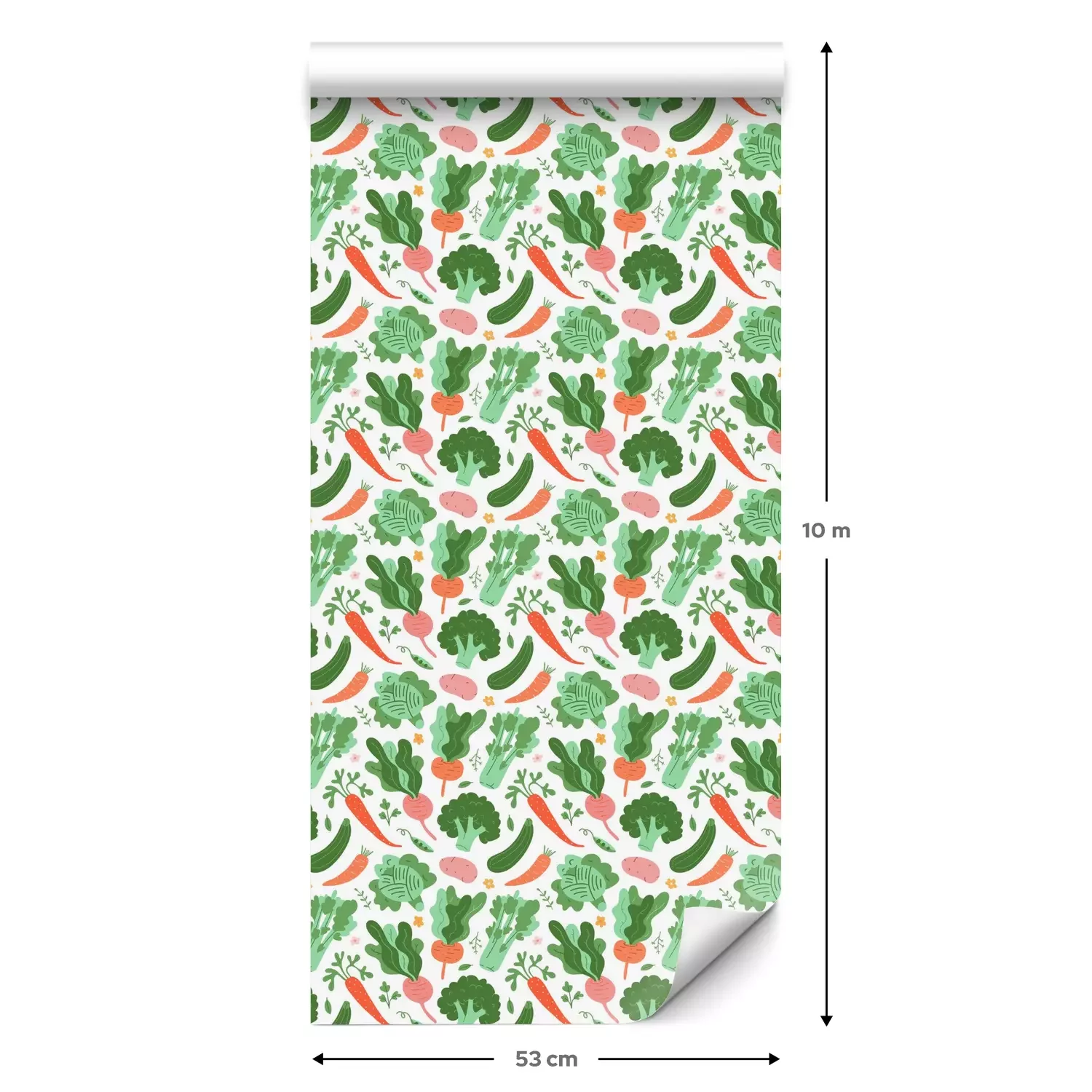 Eine Standard-Tapetenrolle hat die Maße 0,53 m x 10 m und deckt eine Wandfläche von etwa 5 m² ab.
