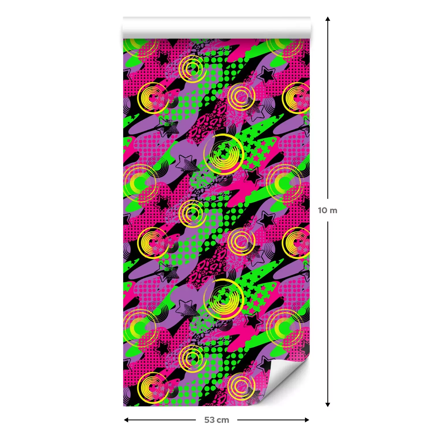 Eine Standard-Tapetenrolle hat die Maße 0,53 m x 10 m und deckt eine Wandfläche von etwa 5 m² ab.