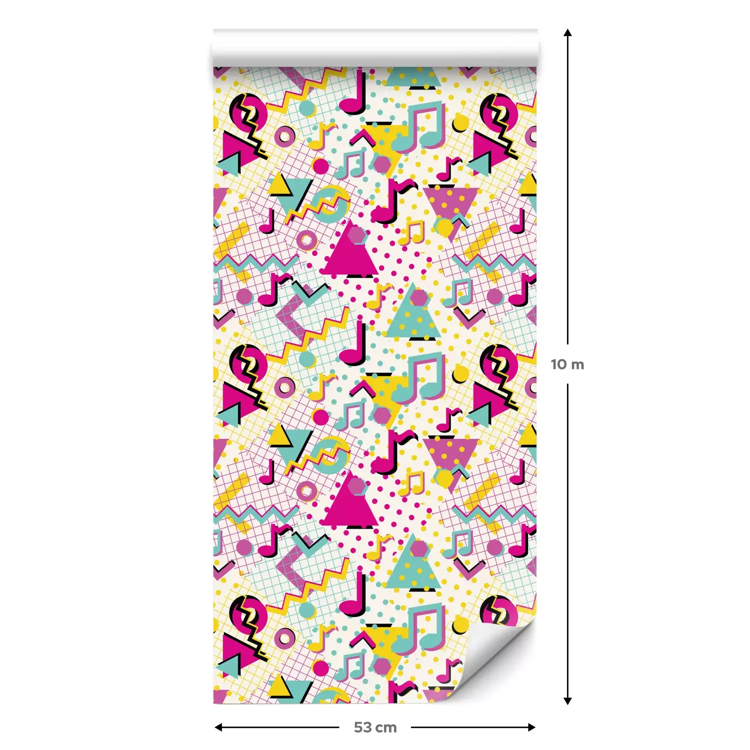 Eine Standard-Tapetenrolle hat die Maße 0,53 m x 10 m und deckt eine Wandfläche von etwa 5 m² ab.