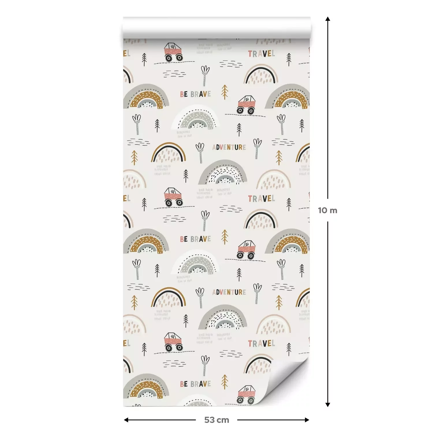 Eine Standard-Tapetenrolle hat die Maße 0,53 m x 10 m und deckt eine Wandfläche von etwa 5 m² ab.