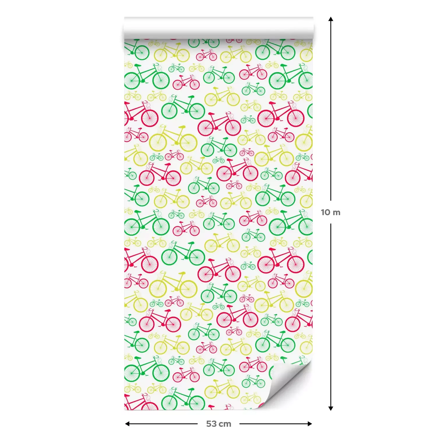 Eine Standard-Tapetenrolle hat die Maße 0,53 m x 10 m und deckt eine Wandfläche von etwa 5 m² ab.