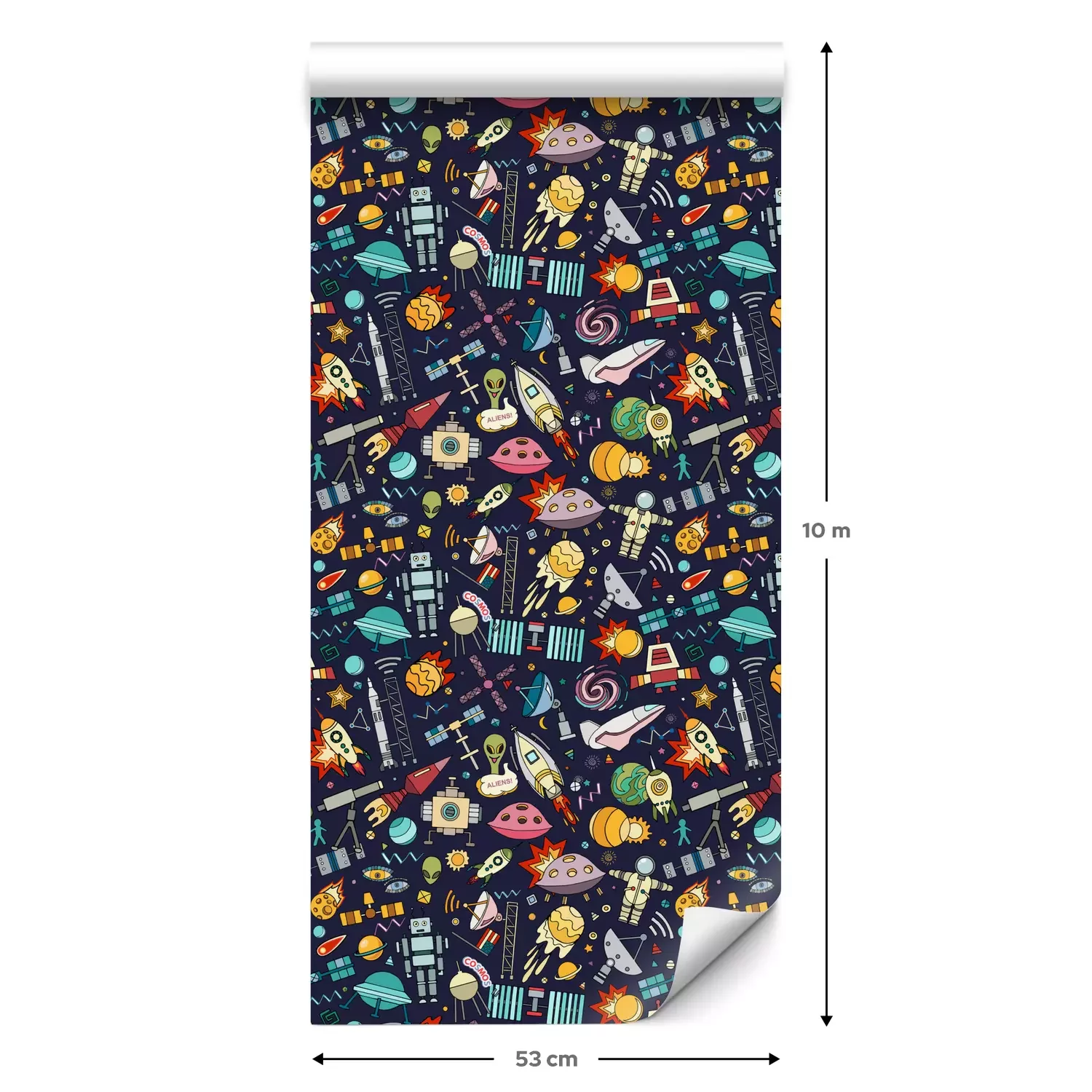 Eine Standard-Tapetenrolle hat die Maße 0,53 m x 10 m und deckt eine Wandfläche von etwa 5 m² ab.