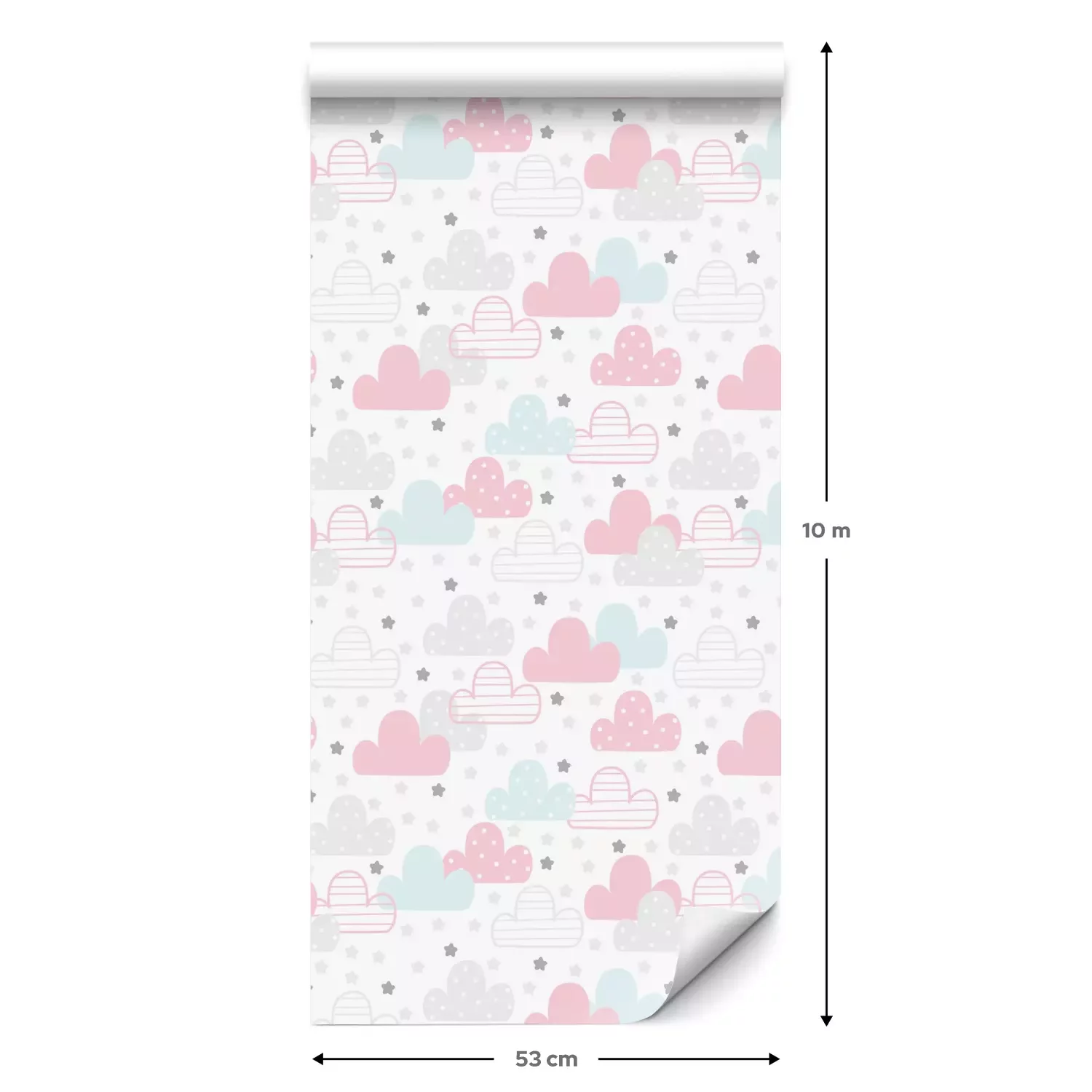 Eine Standard-Tapetenrolle hat die Maße 0,53 m x 10 m und deckt eine Wandfläche von etwa 5 m² ab.