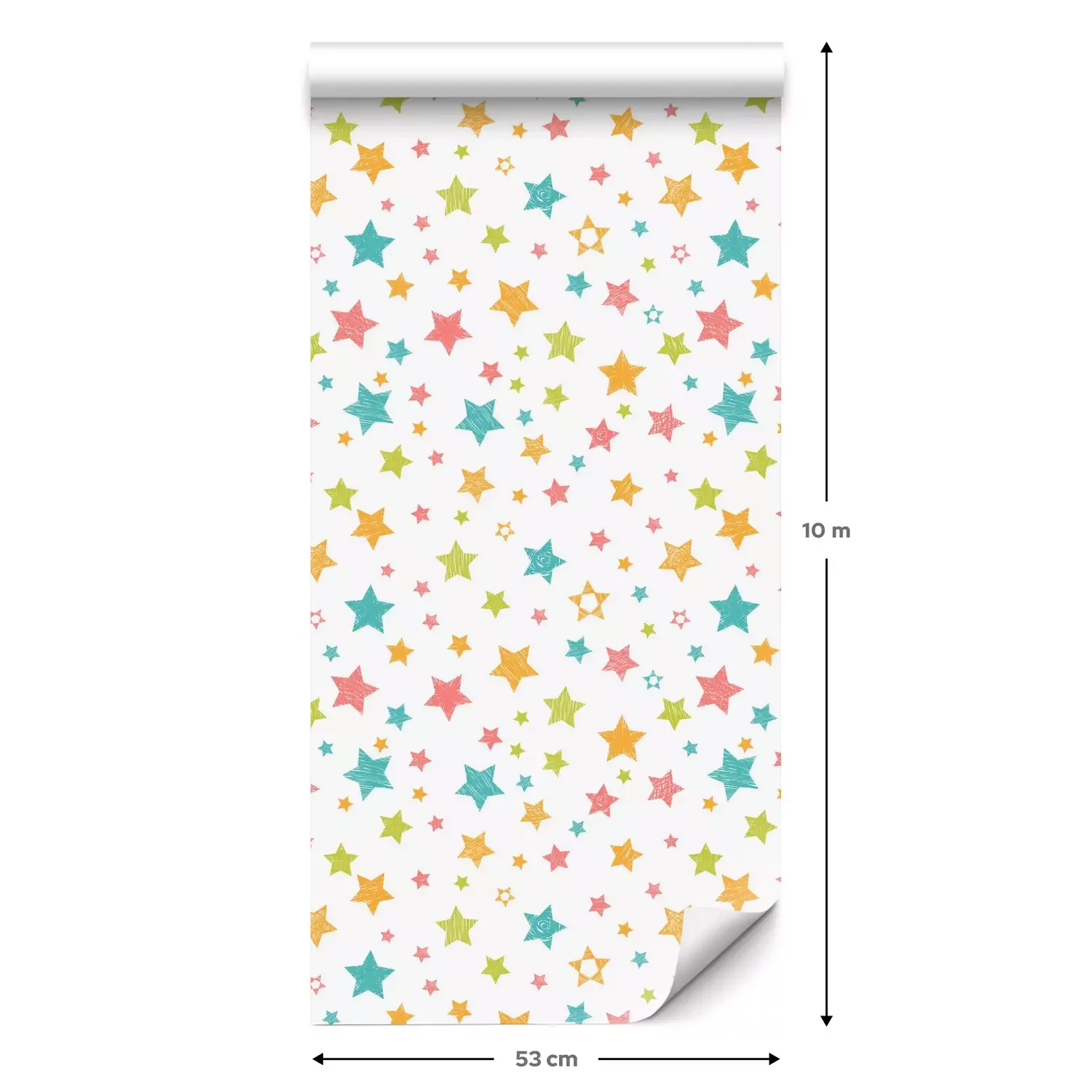 Eine Standard-Tapetenrolle hat die Maße 0,53 m x 10 m und deckt eine Wandfläche von etwa 5 m² ab.
