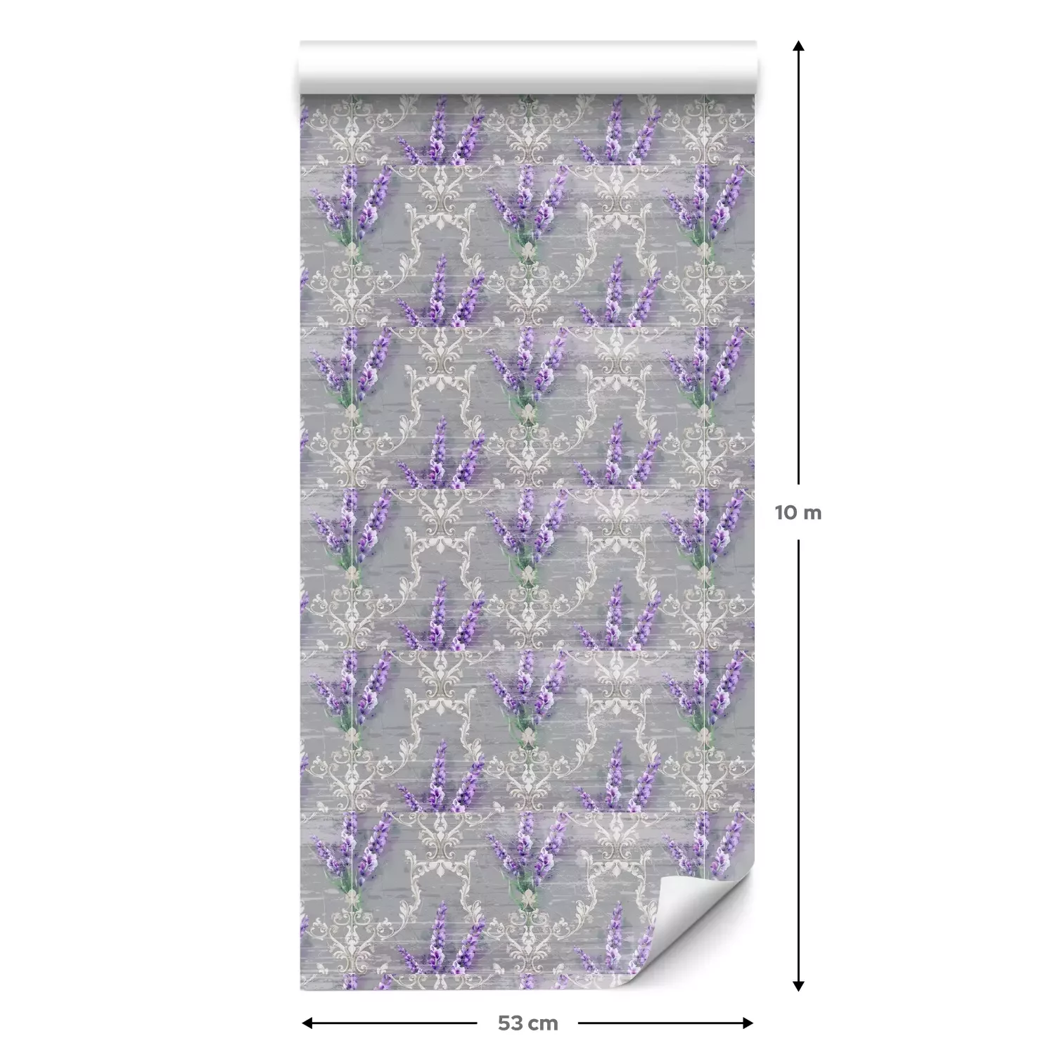 Eine Standard-Tapetenrolle hat die Maße 0,53 m x 10 m und deckt eine Wandfläche von etwa 5 m² ab.