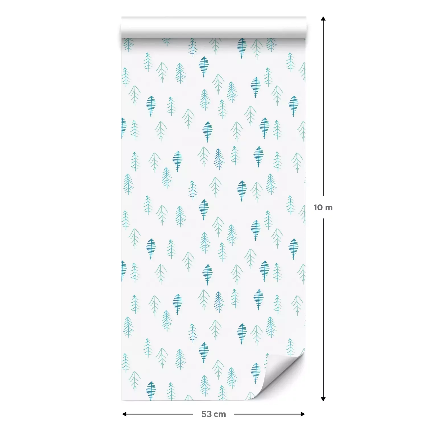 Eine Standard-Tapetenrolle hat die Maße 0,53 m x 10 m und deckt eine Wandfläche von etwa 5 m² ab.