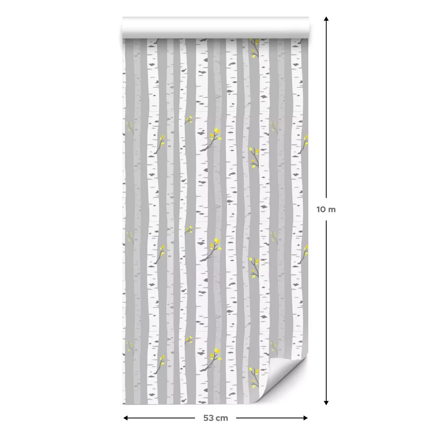 Eine Standard-Tapetenrolle hat die Maße 0,53 m x 10 m und deckt eine Wandfläche von etwa 5 m² ab.