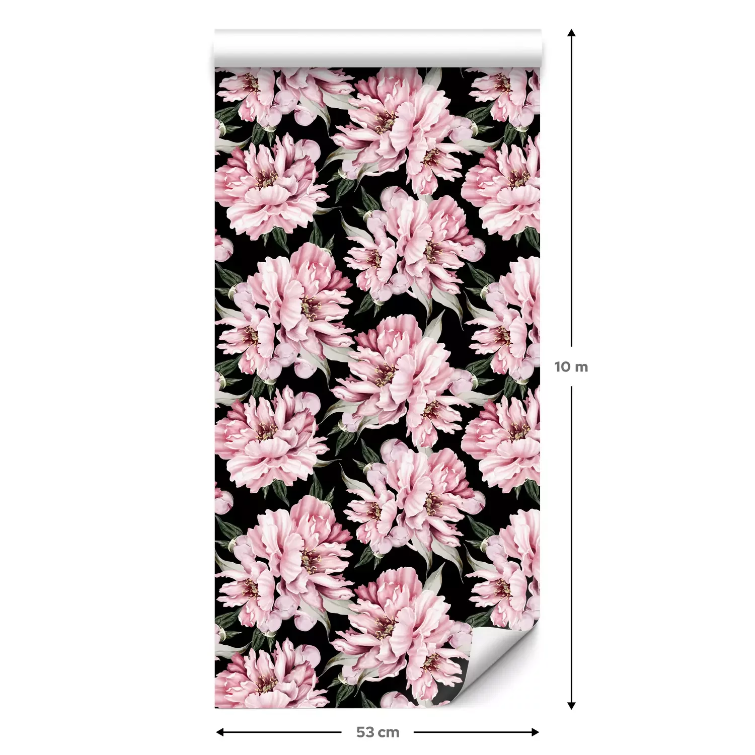 Eine Standard-Tapetenrolle hat die Maße 0,53 m x 10 m und deckt eine Wandfläche von etwa 5 m² ab.