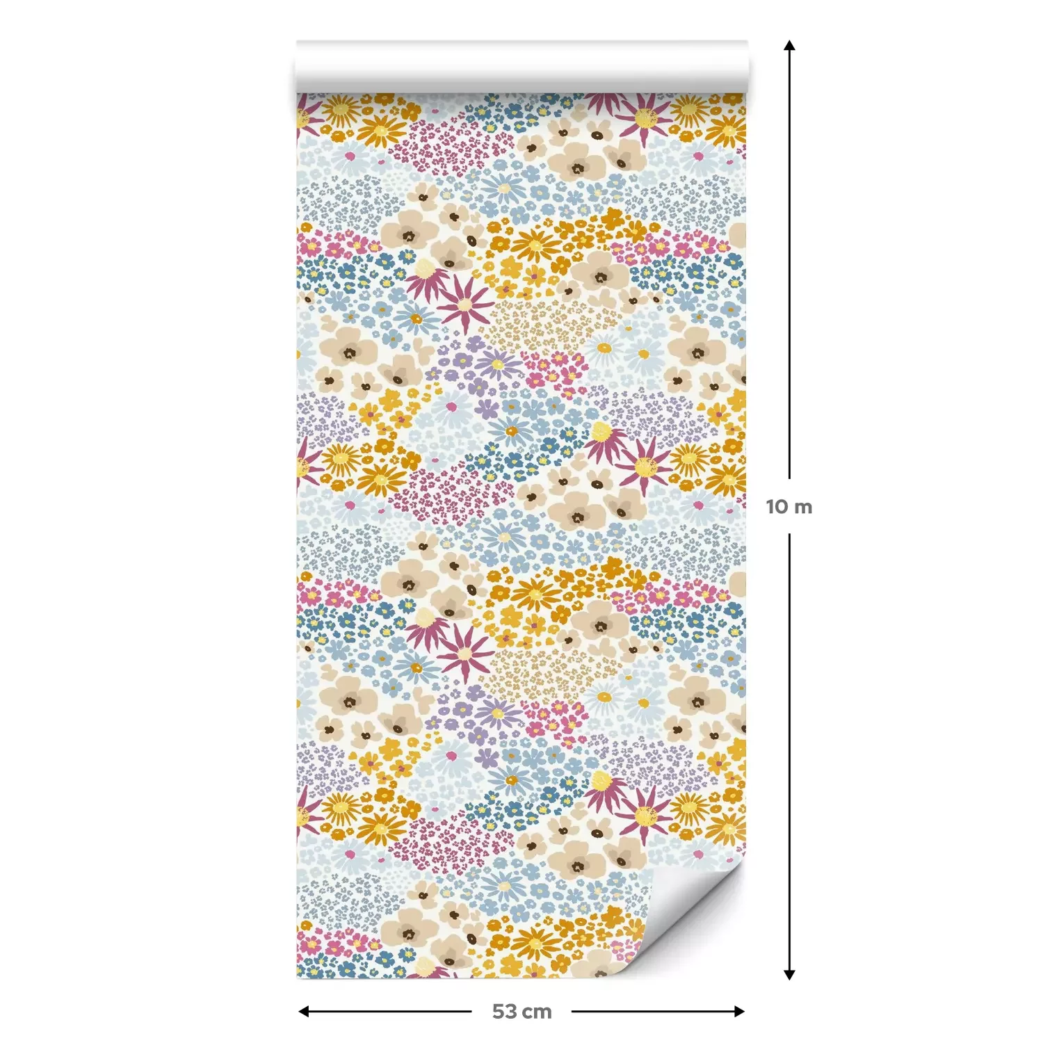 Eine Standard-Tapetenrolle hat die Maße 0,53 m x 10 m und deckt eine Wandfläche von etwa 5 m² ab.
