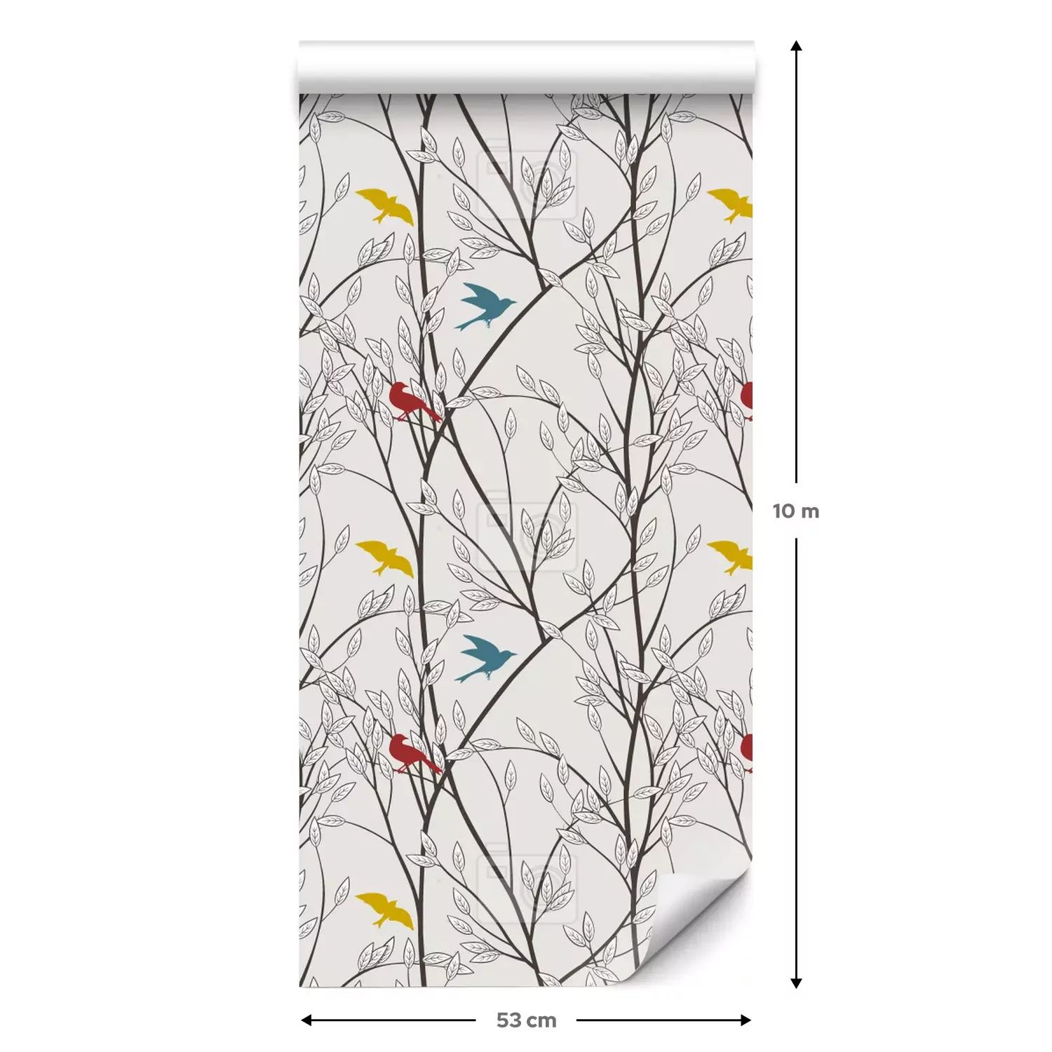 Eine Standard-Tapetenrolle hat die Maße 0,53 m x 10 m und deckt eine Wandfläche von etwa 5 m² ab.