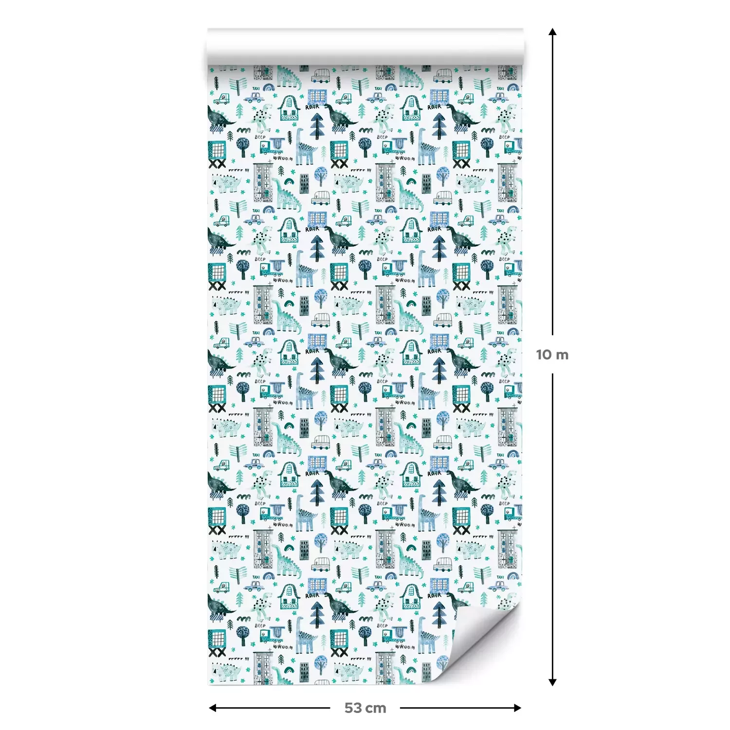 Eine Standard-Tapetenrolle hat die Maße 0,53 m x 10 m und deckt eine Wandfläche von etwa 5 m² ab.