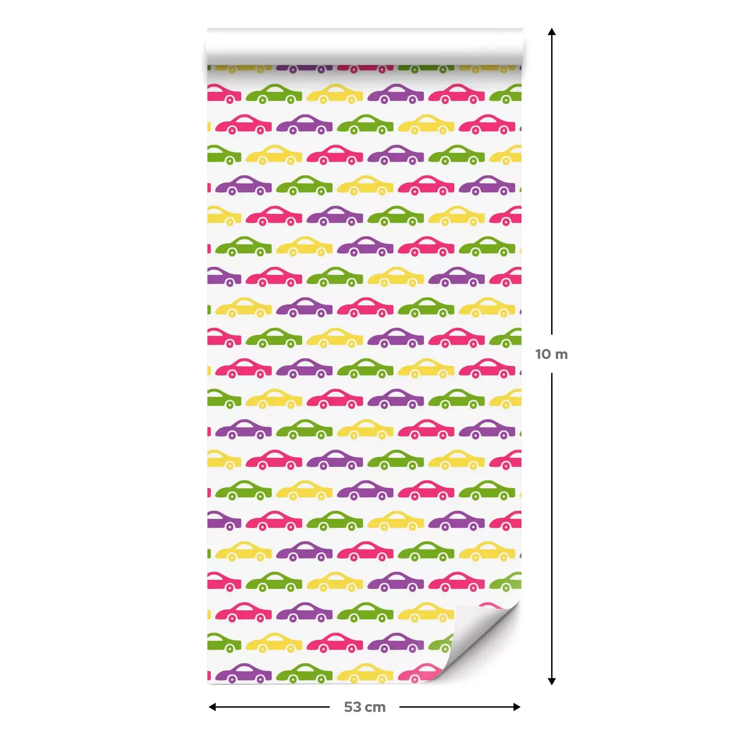 Eine Standard-Tapetenrolle hat die Maße 0,53 m x 10 m und deckt eine Wandfläche von etwa 5 m² ab.