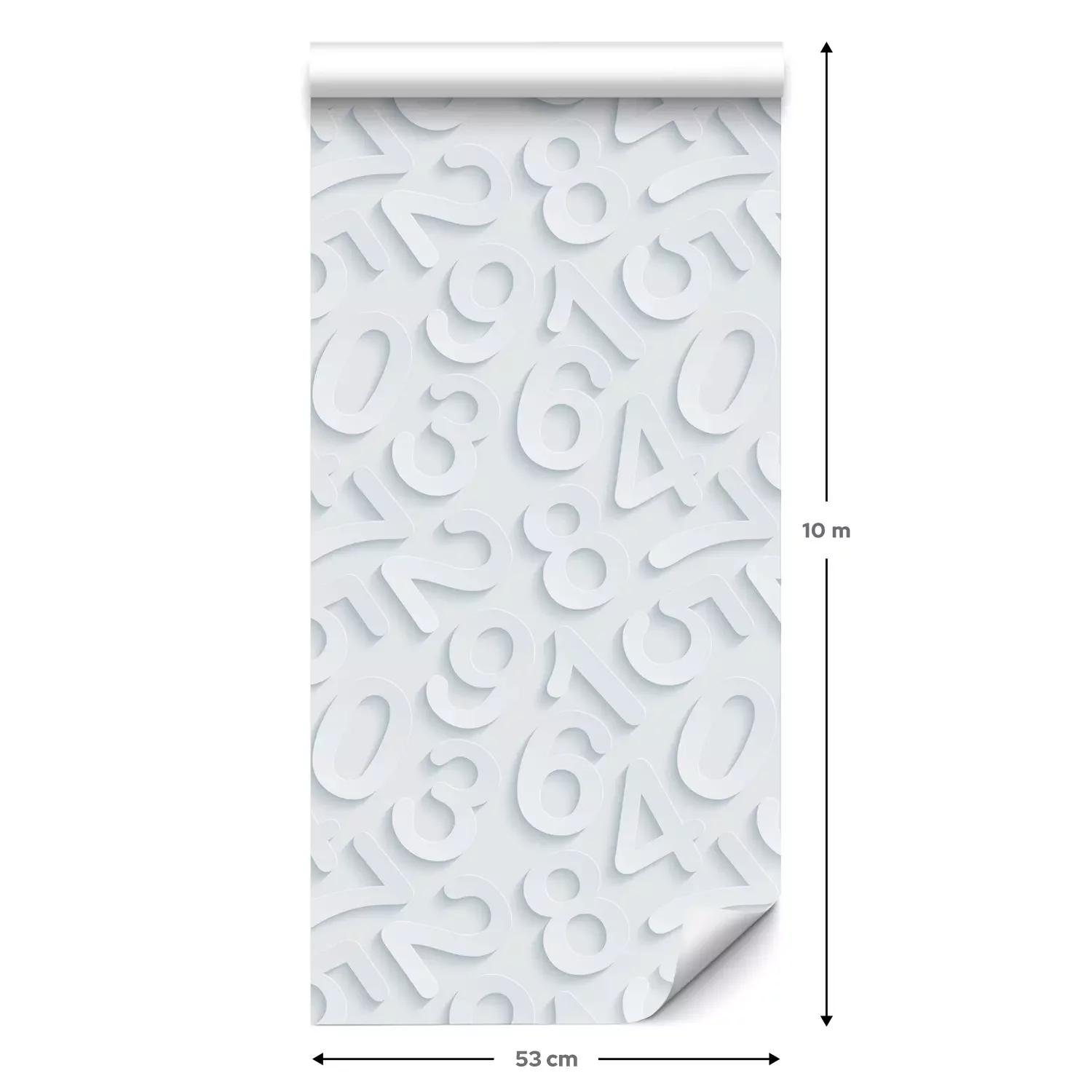 Eine Standard-Tapetenrolle hat die Maße 0,53 m x 10 m und deckt eine Wandfläche von etwa 5 m² ab.