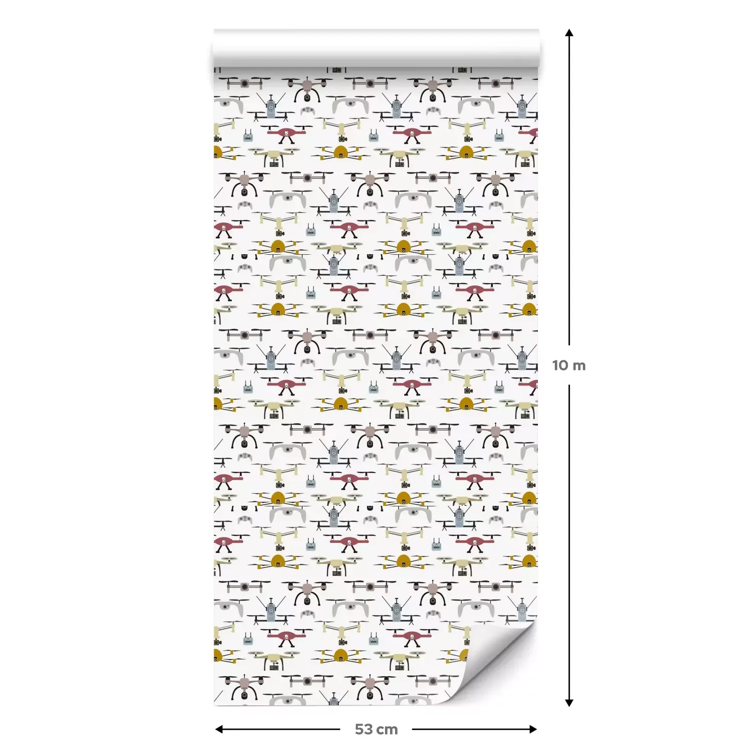 Eine Standard-Tapetenrolle hat die Maße 0,53 m x 10 m und deckt eine Wandfläche von etwa 5 m² ab.