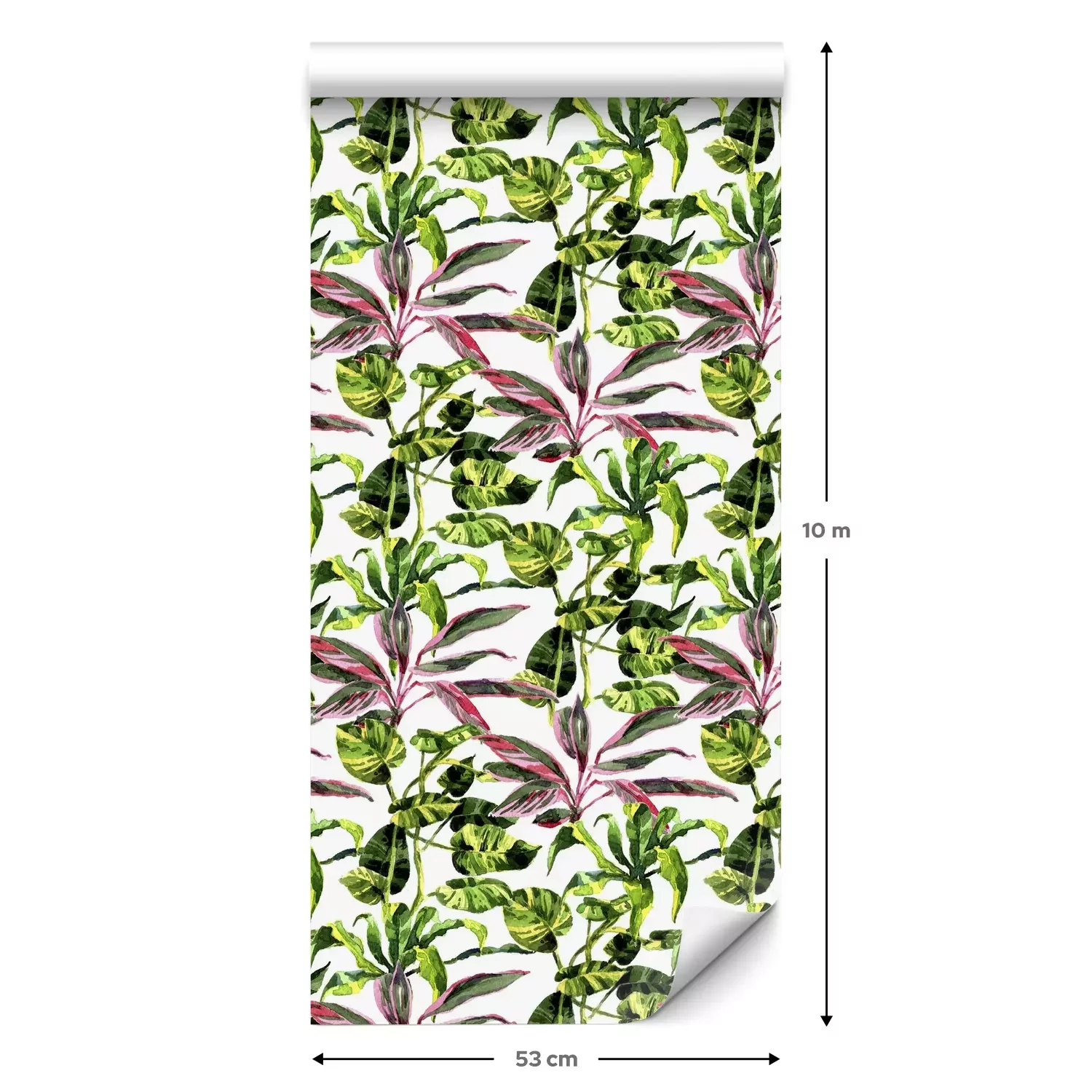 Eine Standard-Tapetenrolle hat die Maße 0,53 m x 10 m und deckt eine Wandfläche von etwa 5 m² ab.