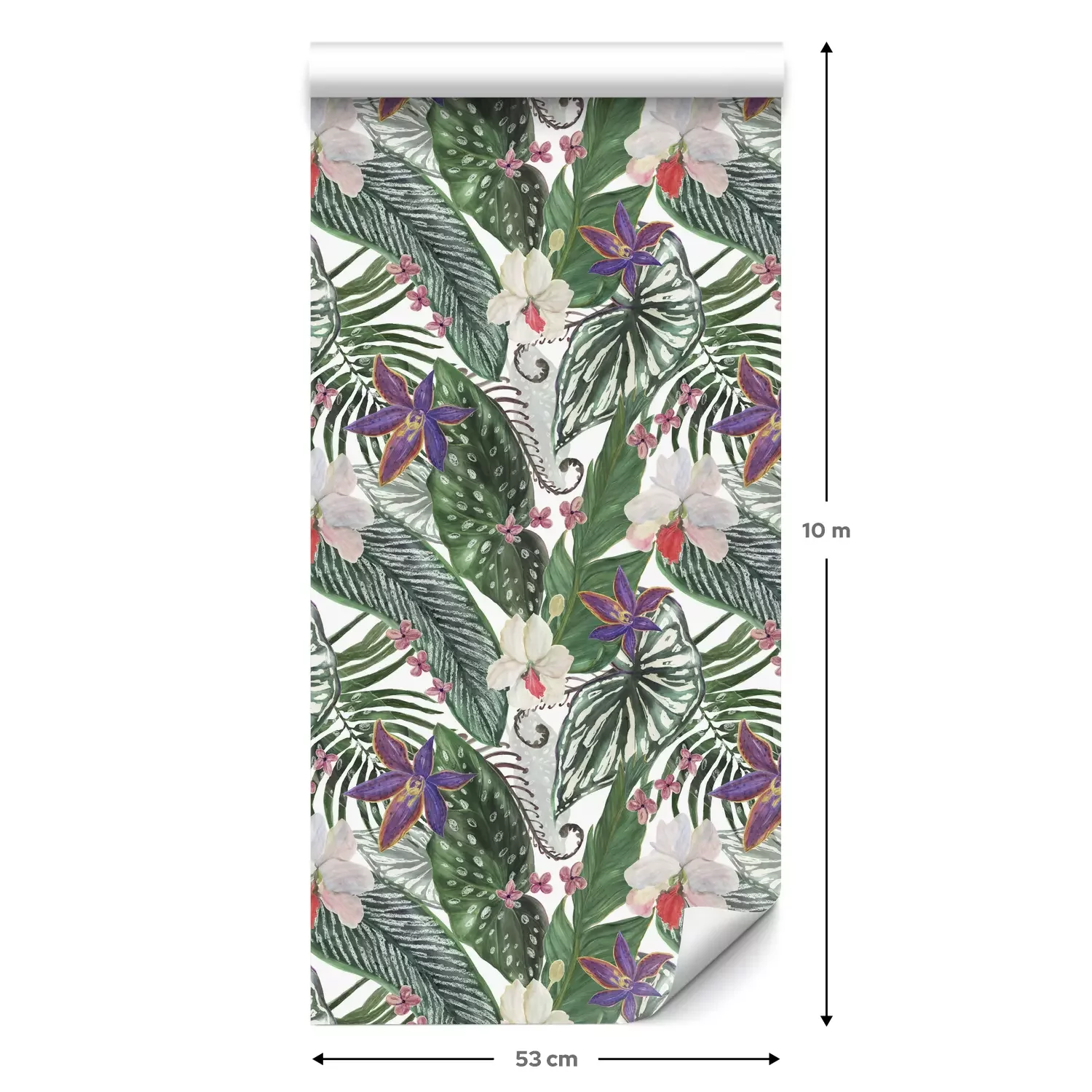 Eine Standard-Tapetenrolle hat die Maße 0,53 m x 10 m und deckt eine Wandfläche von etwa 5 m² ab.