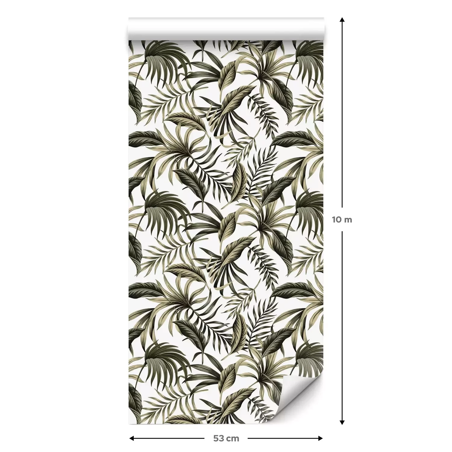 Eine Standard-Tapetenrolle hat die Maße 0,53 m x 10 m und deckt eine Wandfläche von etwa 5 m² ab.