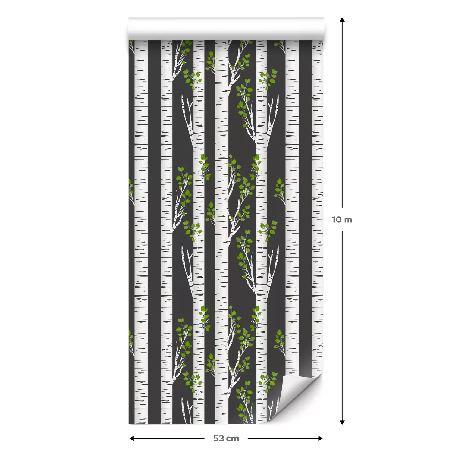 Eine Standard-Tapetenrolle hat die Maße 0,53 m x 10 m und deckt eine Wandfläche von etwa 5 m² ab.