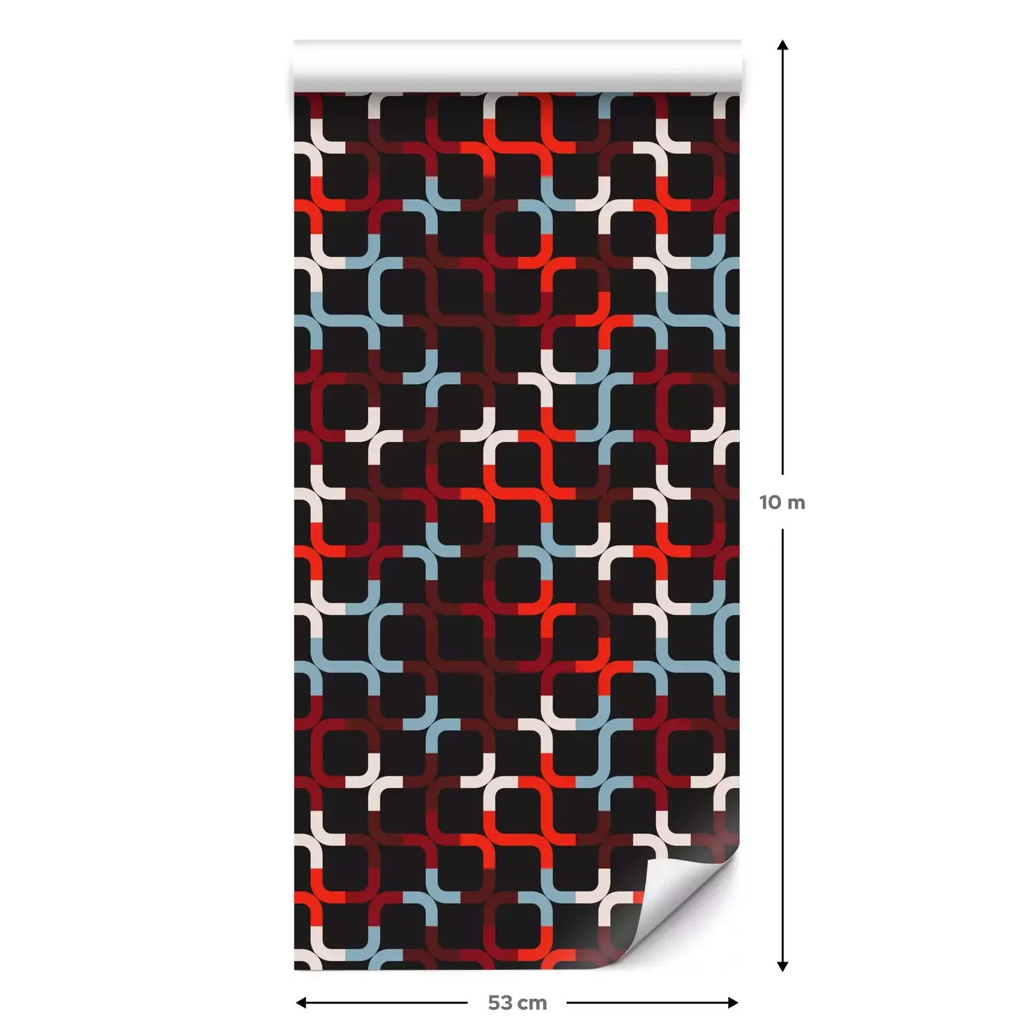 Eine Standard-Tapetenrolle hat die Maße 0,53 m x 10 m und deckt eine Wandfläche von etwa 5 m² ab.