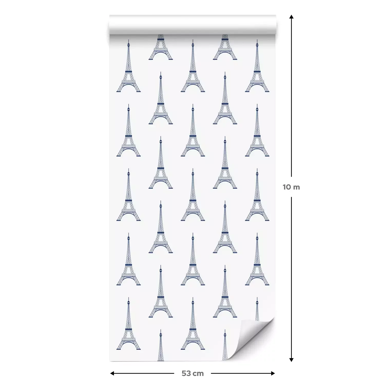 Eine Standard-Tapetenrolle hat die Maße 0,53 m x 10 m und deckt eine Wandfläche von etwa 5 m² ab.