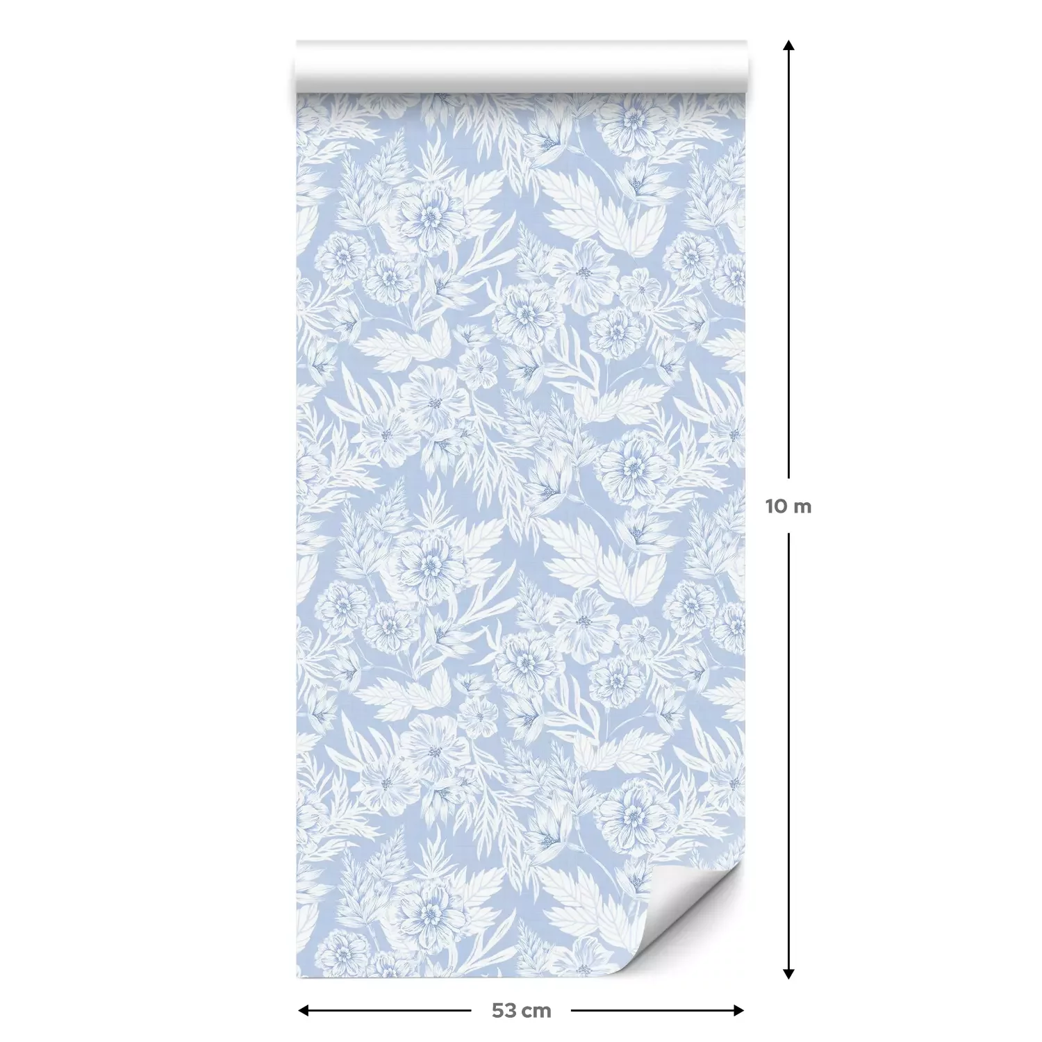 Eine Standard-Tapetenrolle hat die Maße 0,53 m x 10 m und deckt eine Wandfläche von etwa 5 m² ab.