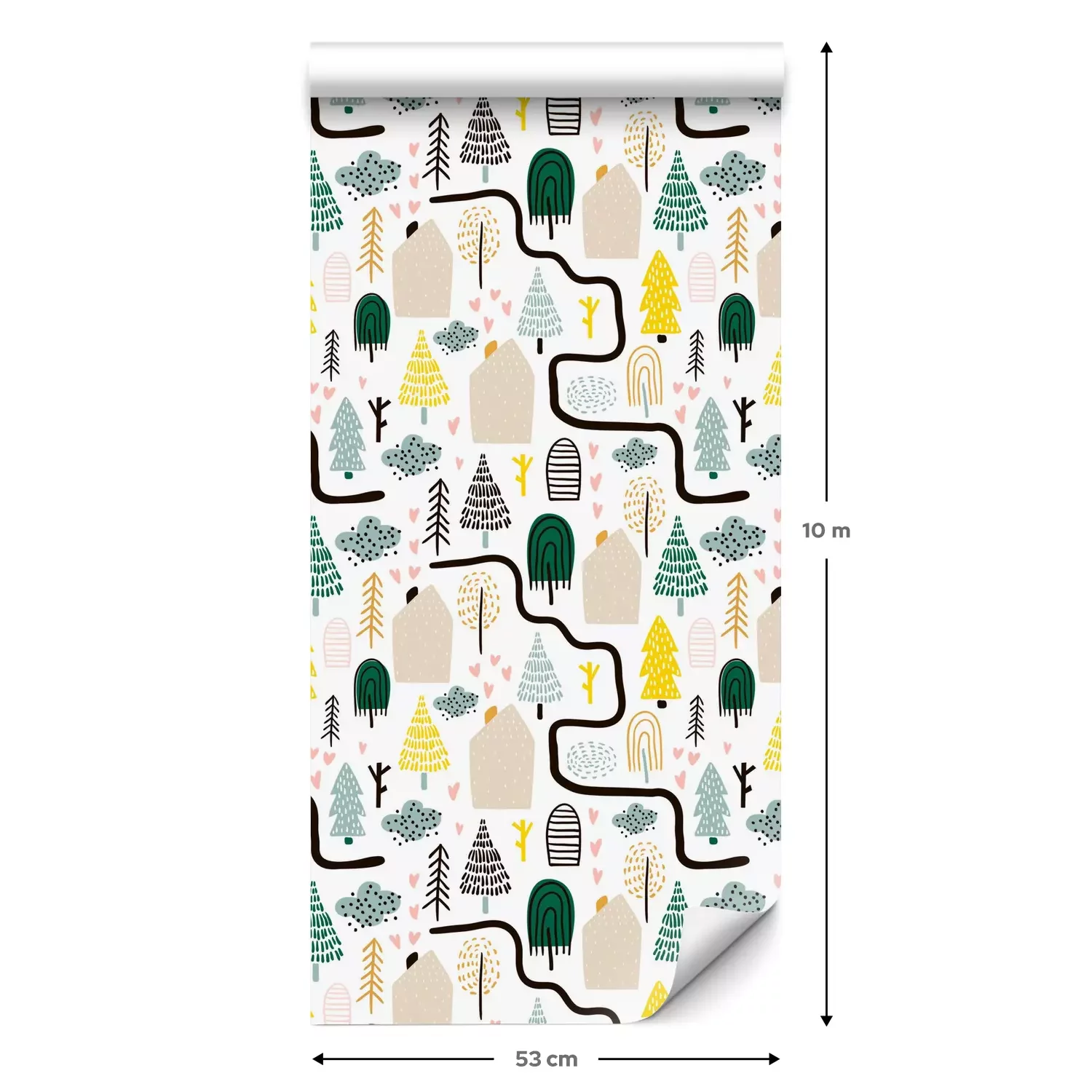 Eine Standard-Tapetenrolle hat die Maße 0,53 m x 10 m und deckt eine Wandfläche von etwa 5 m² ab.