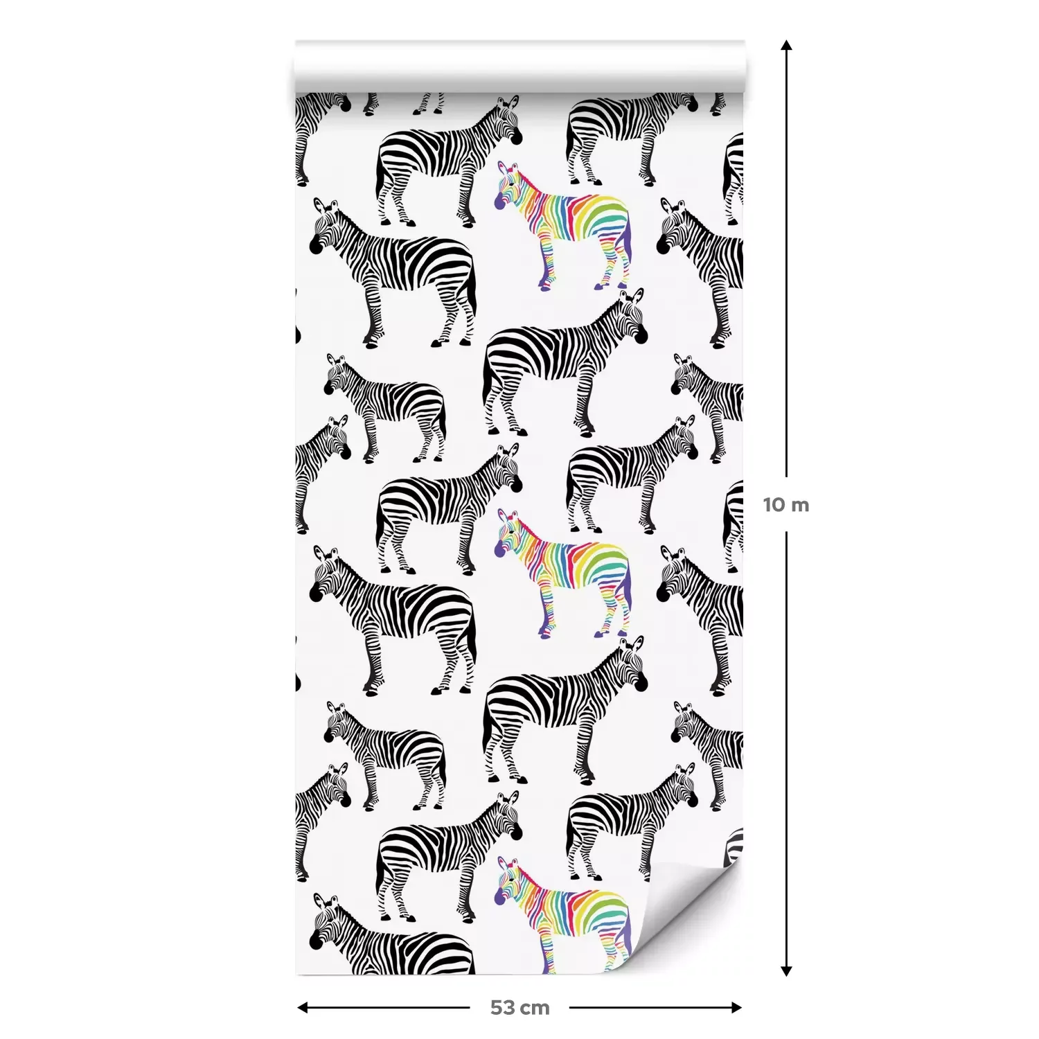 Eine Standard-Tapetenrolle hat die Maße 0,53 m x 10 m und deckt eine Wandfläche von etwa 5 m² ab.