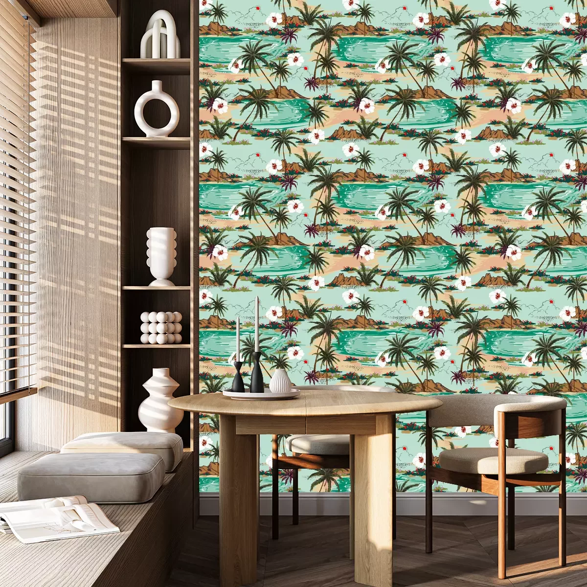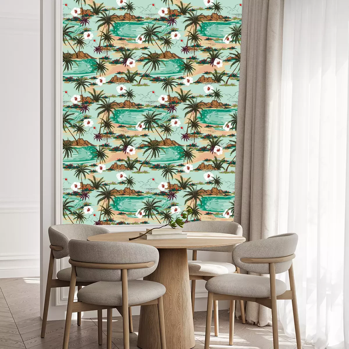 Die Tapete zeichnet sich durch ein sich wiederholendes Muster aus, das ein rhythmisches Design erzeugt. Als Trägermaterial wird hier Vlies verwendet. Sie wird in Rollen mit den standardisierten Maßen 10 m x 53 cm verkauft. Eine Fototapete ist eine spezielle Art von Tapete, auf der ein Foto oder ein realistisches Bild (z.B. eine Landschaft oder eine Stadtansicht) großflächig aufgedruckt ist. Sie wird nicht in Standardrollen verkauft, sondern in Bahnen, die auf die Abmessungen einer bestimmten Wand zugeschnitten sind. So passt das gesamte Motiv perfekt darauf. Zudem können Sie das Material wählen, aus dem die Tapete hergestellt werden soll.