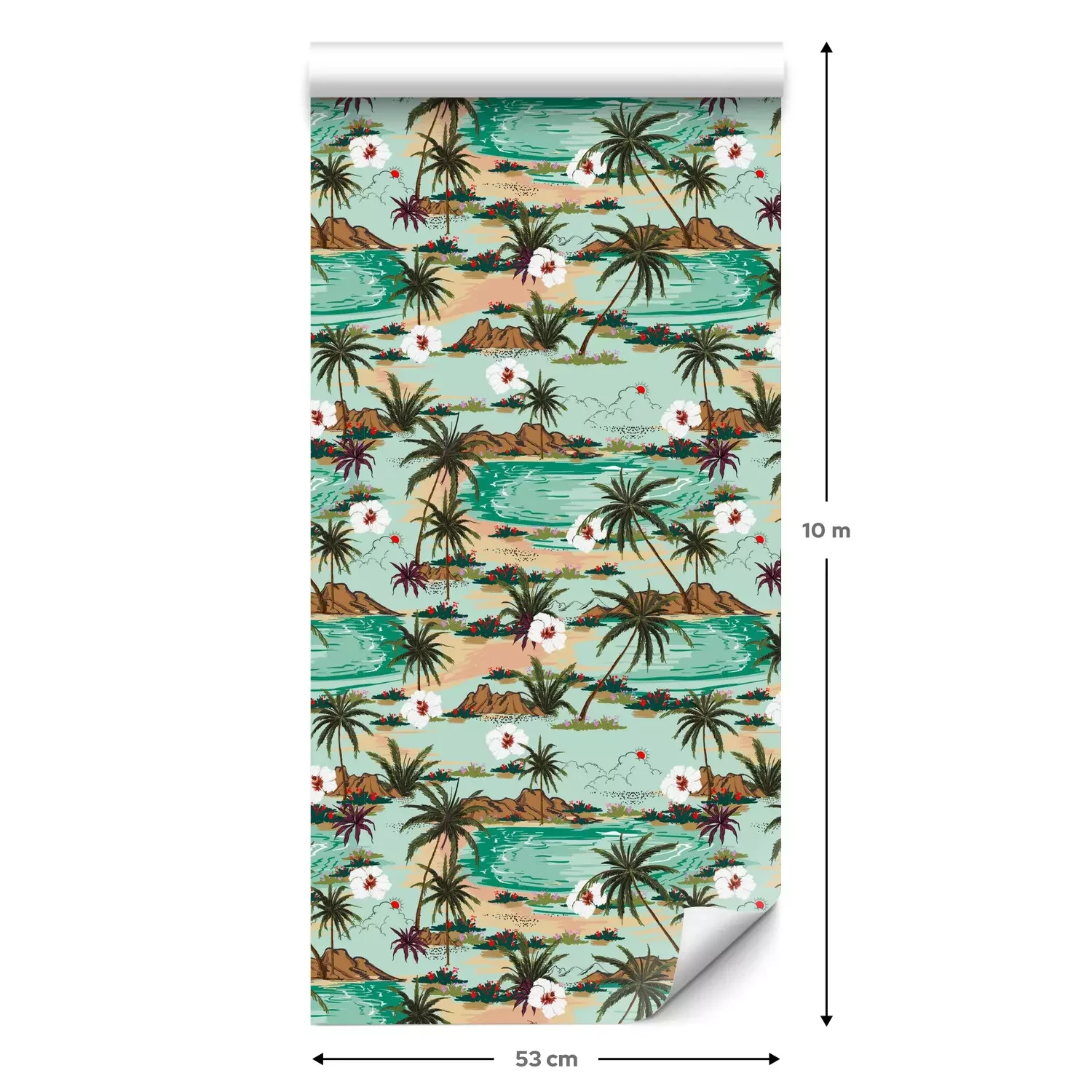 Eine Standard-Tapetenrolle hat die Maße 0,53 m x 10 m und deckt eine Wandfläche von etwa 5 m² ab.