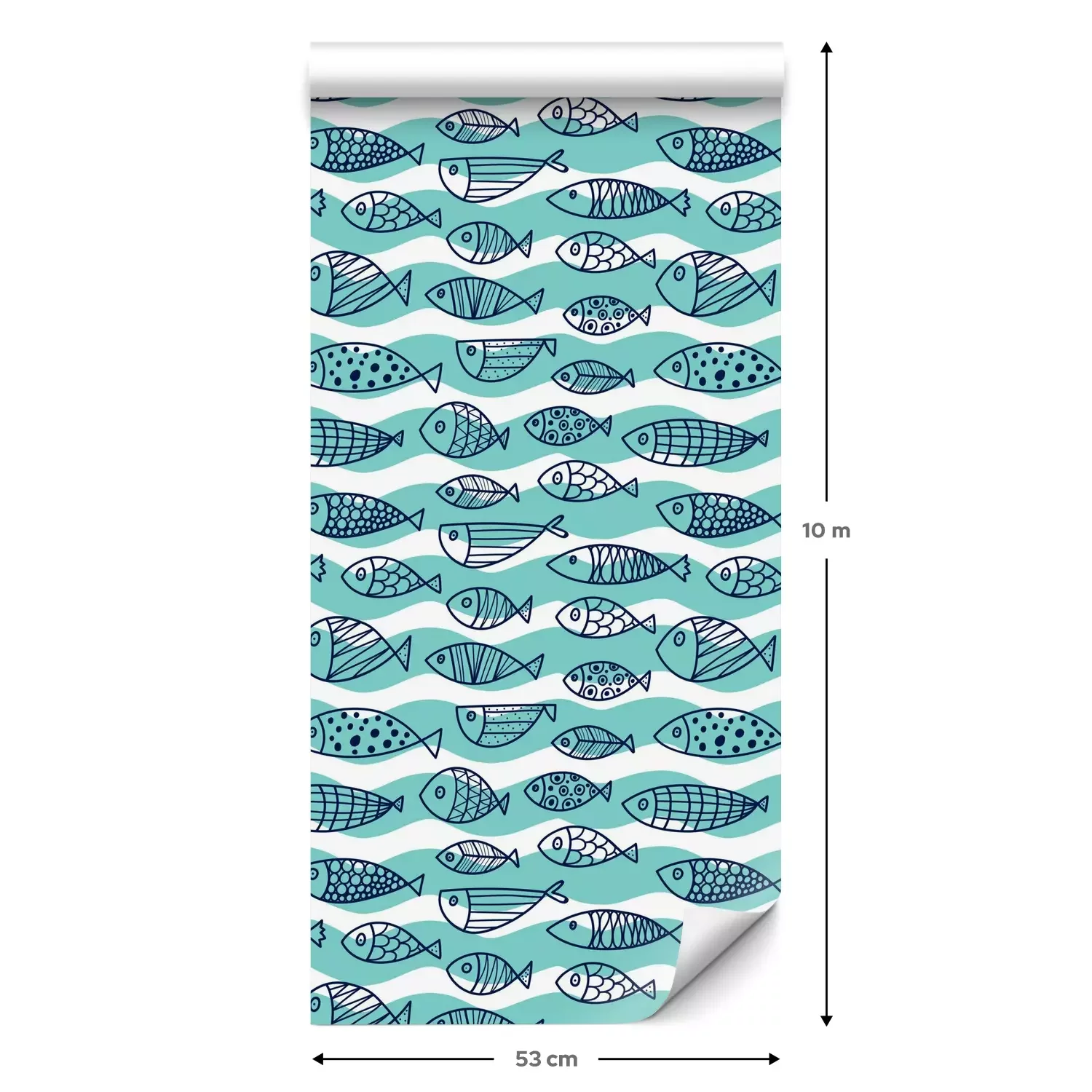 Eine Standard-Tapetenrolle hat die Maße 0,53 m x 10 m und deckt eine Wandfläche von etwa 5 m² ab.