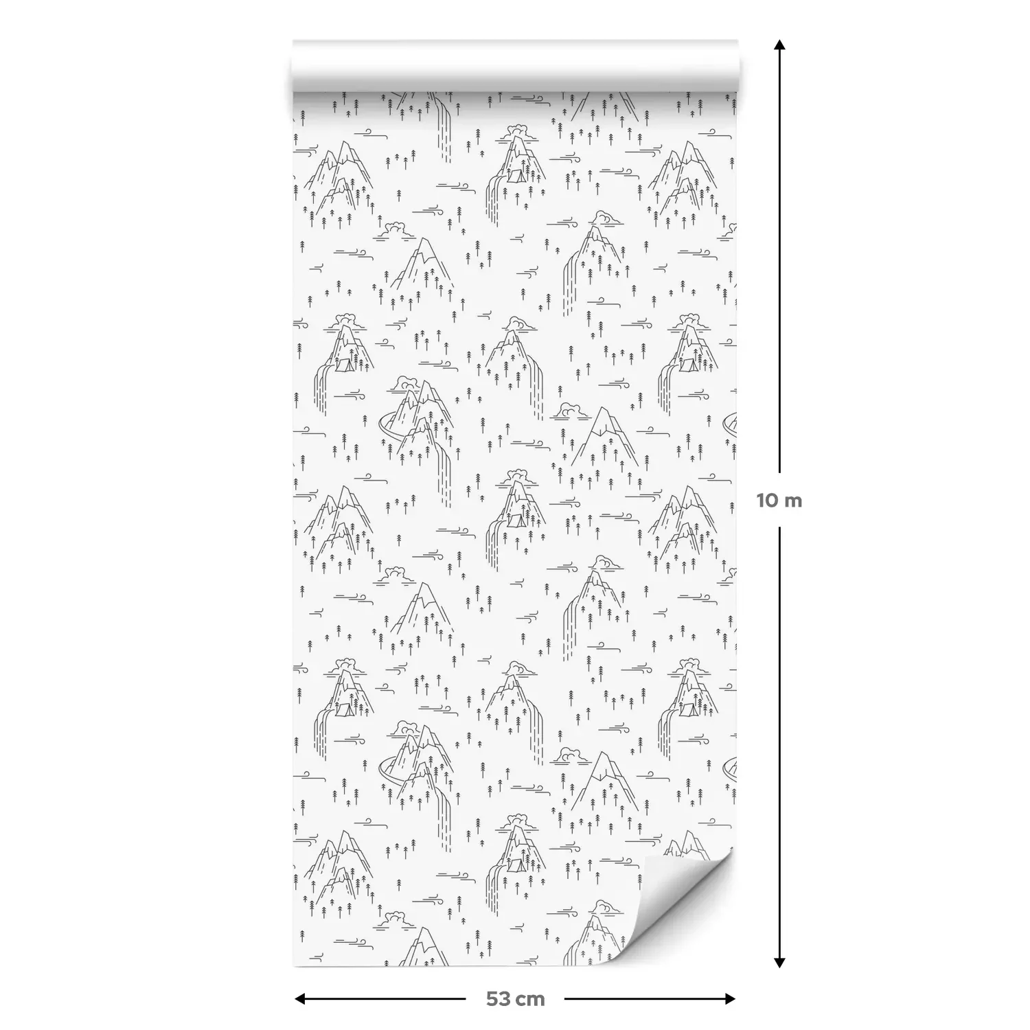Eine Standard-Tapetenrolle hat die Maße 0,53 m x 10 m und deckt eine Wandfläche von etwa 5 m² ab.