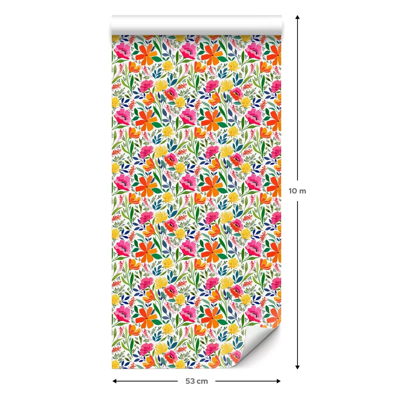 Eine Standard-Tapetenrolle hat die Maße 0,53 m x 10 m und deckt eine Wandfläche von etwa 5 m² ab.