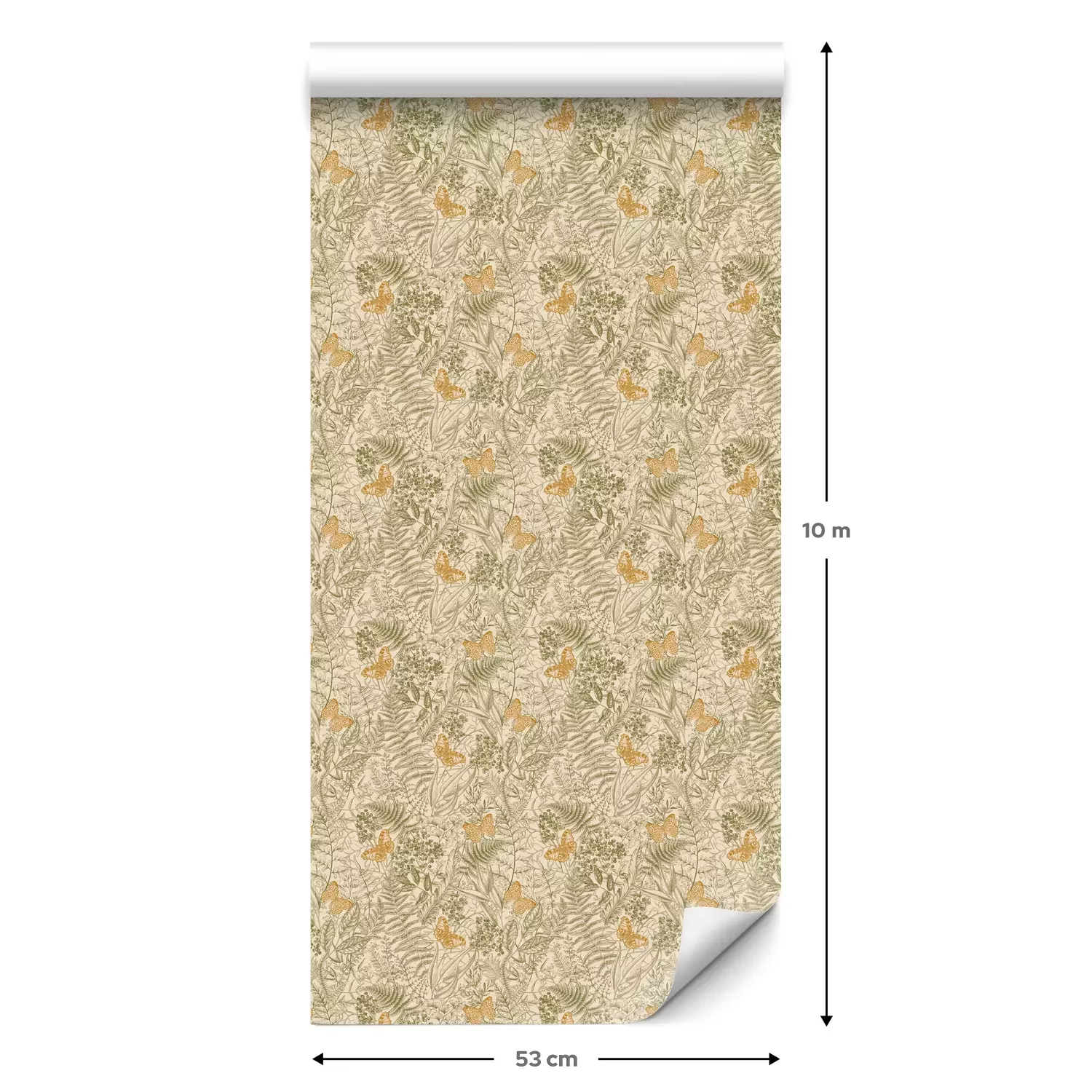 Eine Standard-Tapetenrolle hat die Maße 0,53 m x 10 m und deckt eine Wandfläche von etwa 5 m² ab.