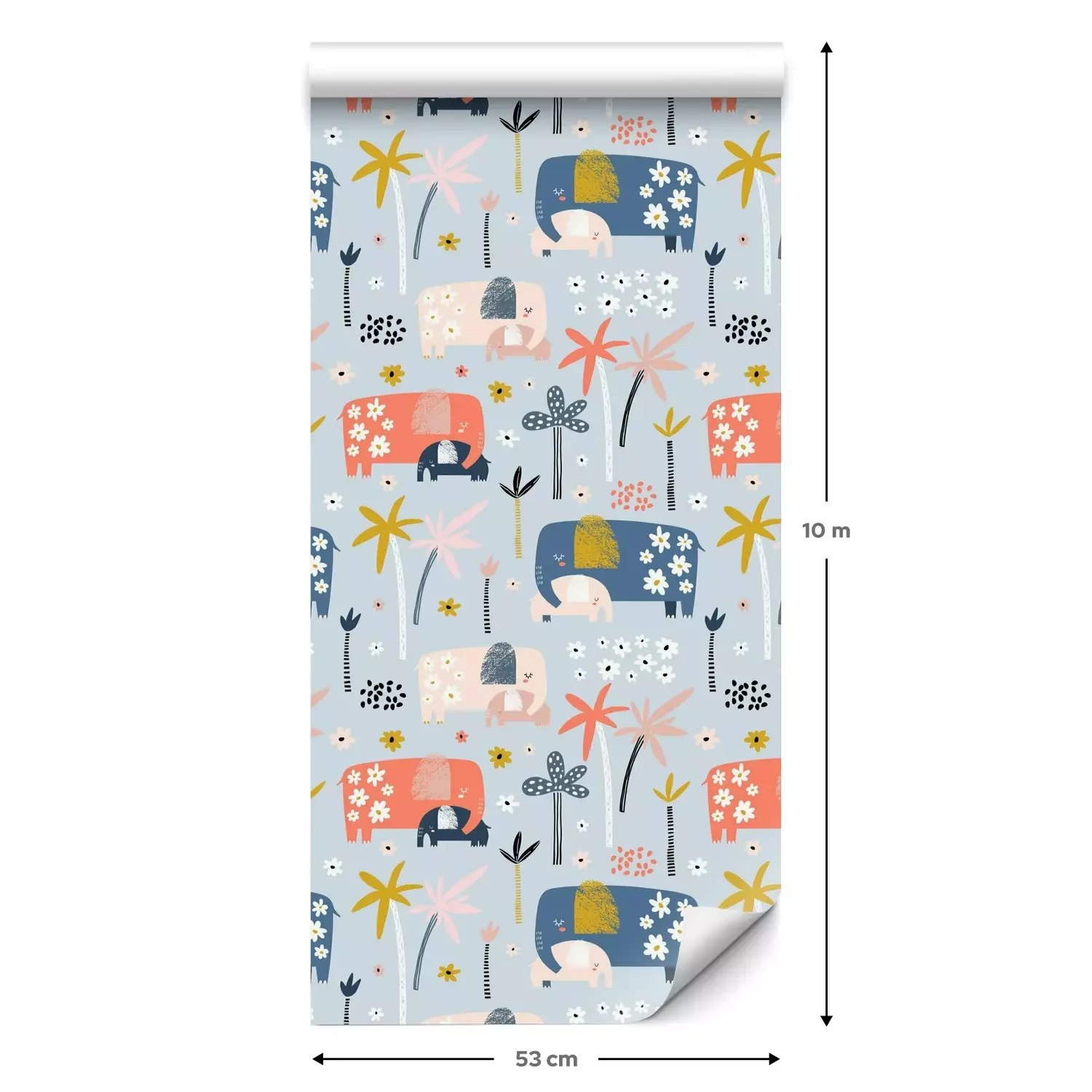 Eine Standard-Tapetenrolle hat die Maße 0,53 m x 10 m und deckt eine Wandfläche von etwa 5 m² ab.