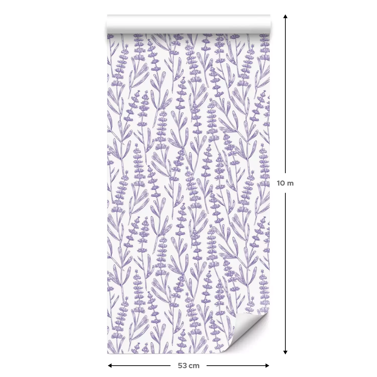 Eine Standard-Tapetenrolle hat die Maße 0,53 m x 10 m und deckt eine Wandfläche von etwa 5 m² ab.