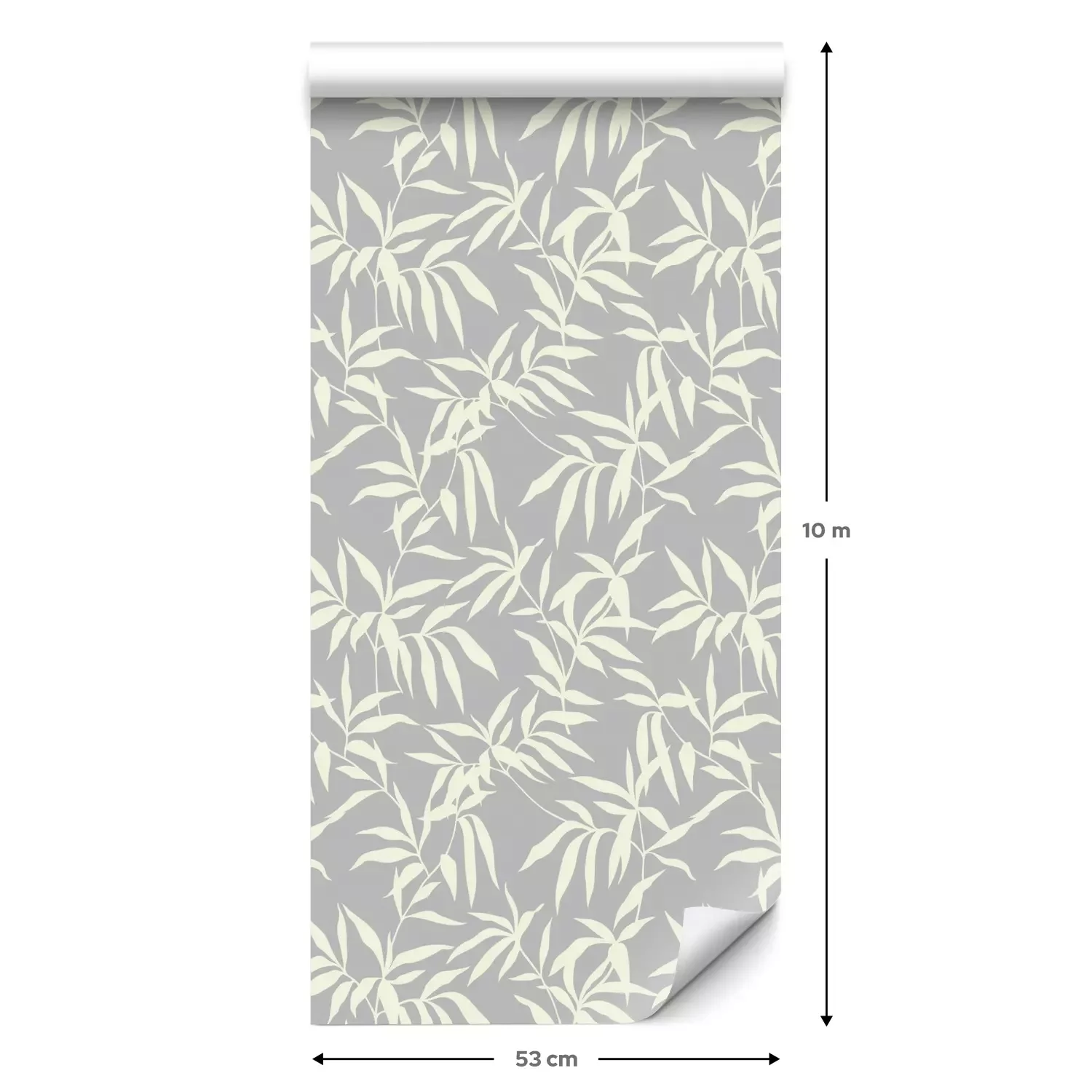 Eine Standard-Tapetenrolle hat die Maße 0,53 m x 10 m und deckt eine Wandfläche von etwa 5 m² ab.