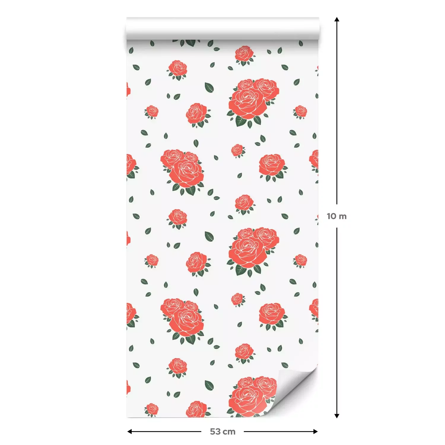 Eine Standard-Tapetenrolle hat die Maße 0,53 m x 10 m und deckt eine Wandfläche von etwa 5 m² ab.