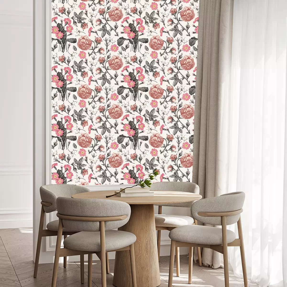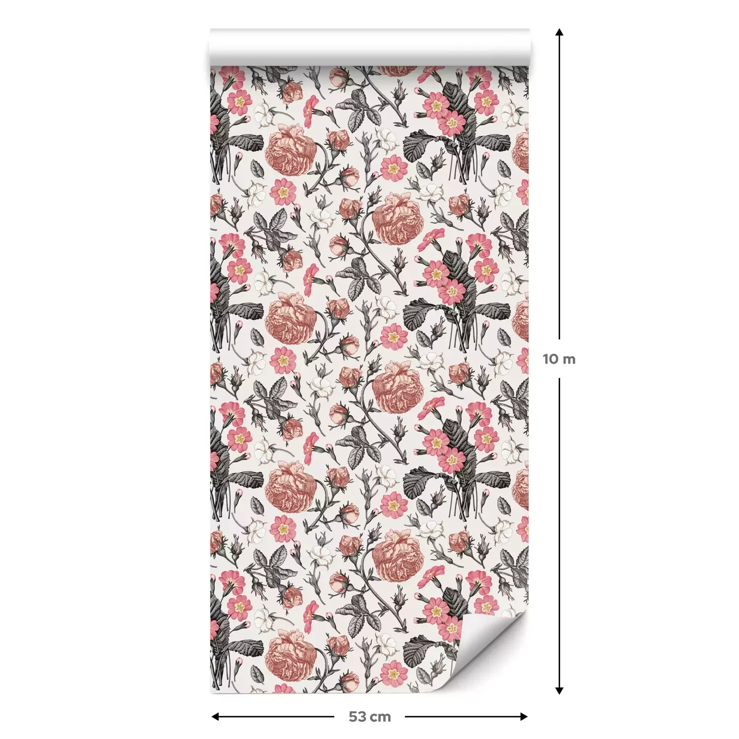 Eine Standard-Tapetenrolle hat die Maße 0,53 m x 10 m und deckt eine Wandfläche von etwa 5 m² ab.