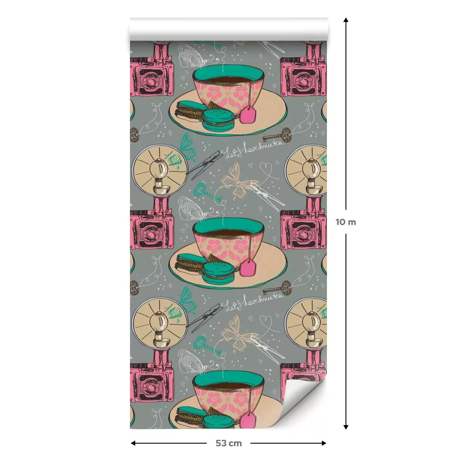 Eine Standard-Tapetenrolle hat die Maße 0,53 m x 10 m und deckt eine Wandfläche von etwa 5 m² ab.