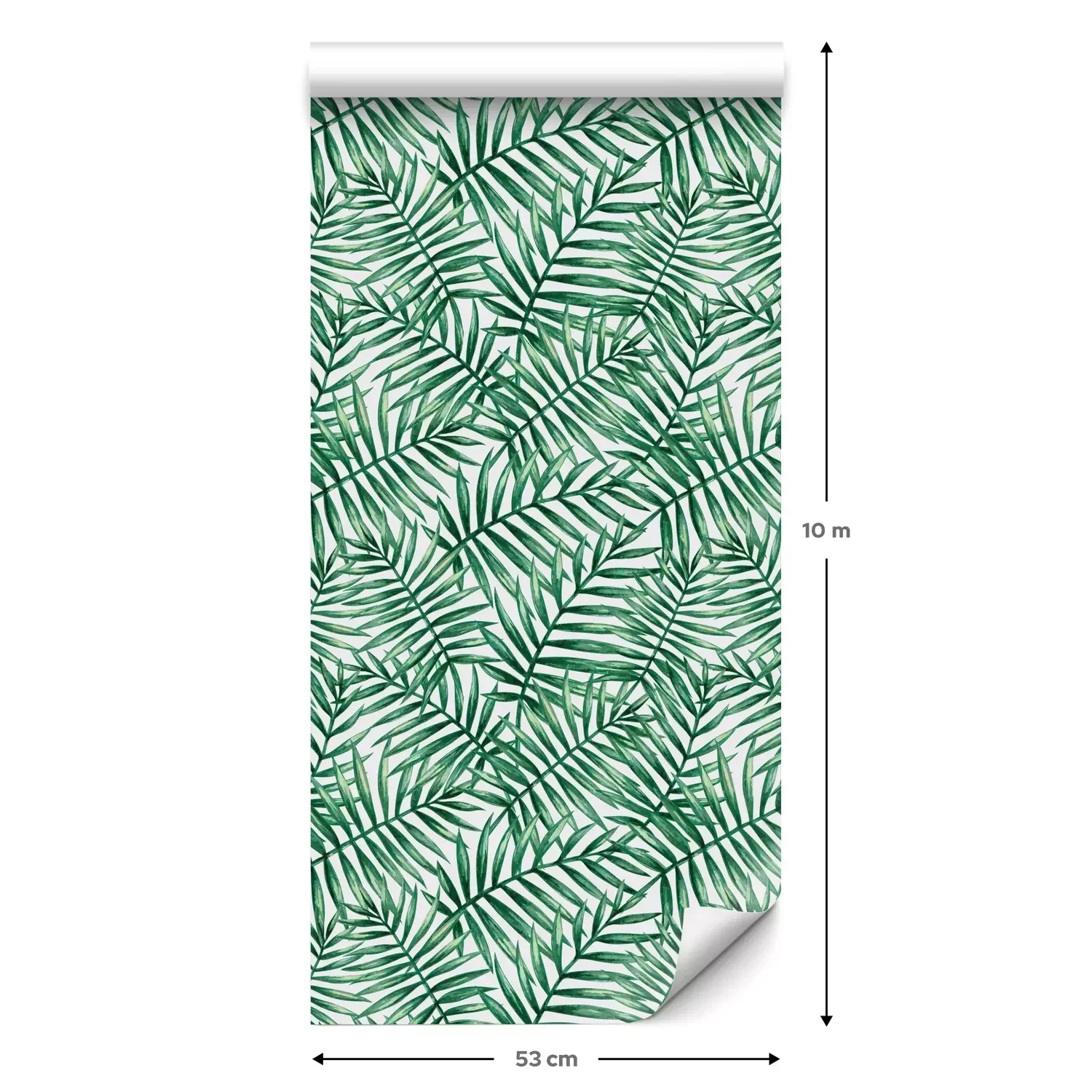 Eine Standard-Tapetenrolle hat die Maße 0,53 m x 10 m und deckt eine Wandfläche von etwa 5 m² ab.