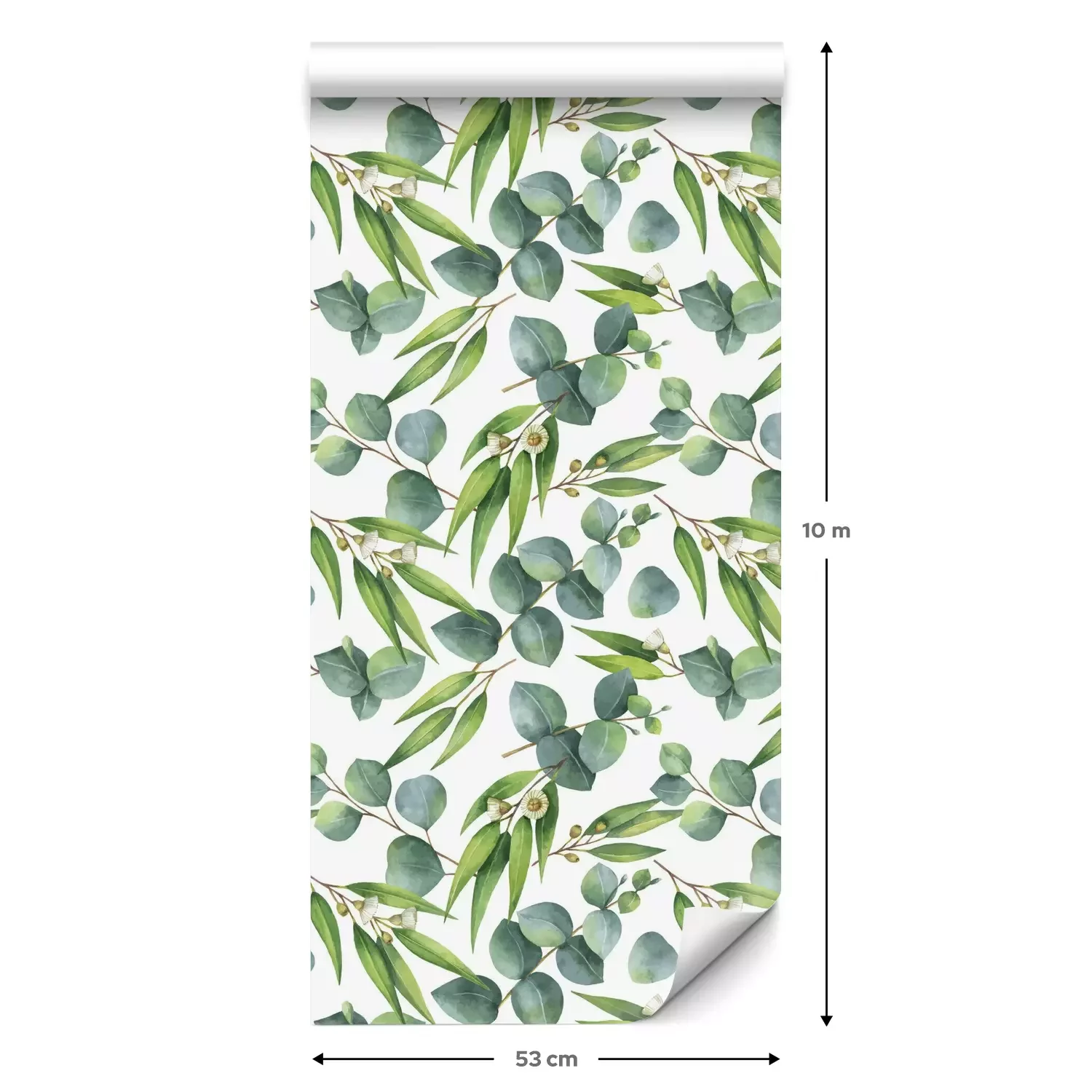 Eine Standard-Tapetenrolle hat die Maße 0,53 m x 10 m und deckt eine Wandfläche von etwa 5 m² ab.