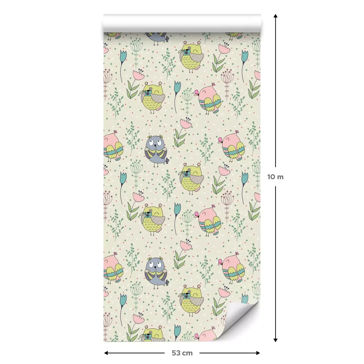 Eine Standard-Tapetenrolle hat die Maße 0,53 m x 10 m und deckt eine Wandfläche von etwa 5 m² ab.