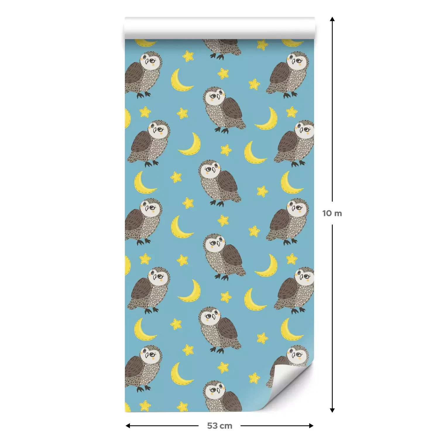 Eine Standard-Tapetenrolle hat die Maße 0,53 m x 10 m und deckt eine Wandfläche von etwa 5 m² ab.