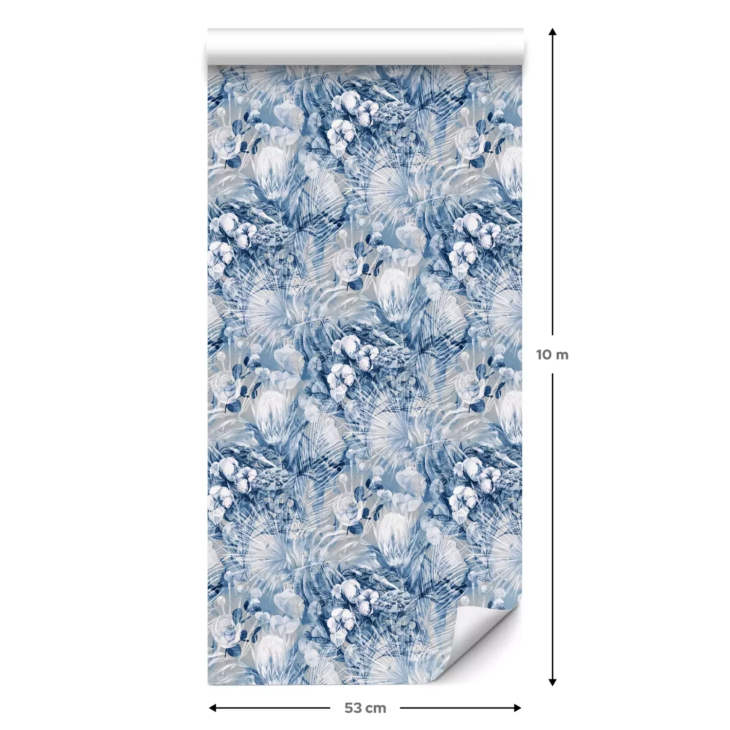 Eine Standard-Tapetenrolle hat die Maße 0,53 m x 10 m und deckt eine Wandfläche von etwa 5 m² ab.