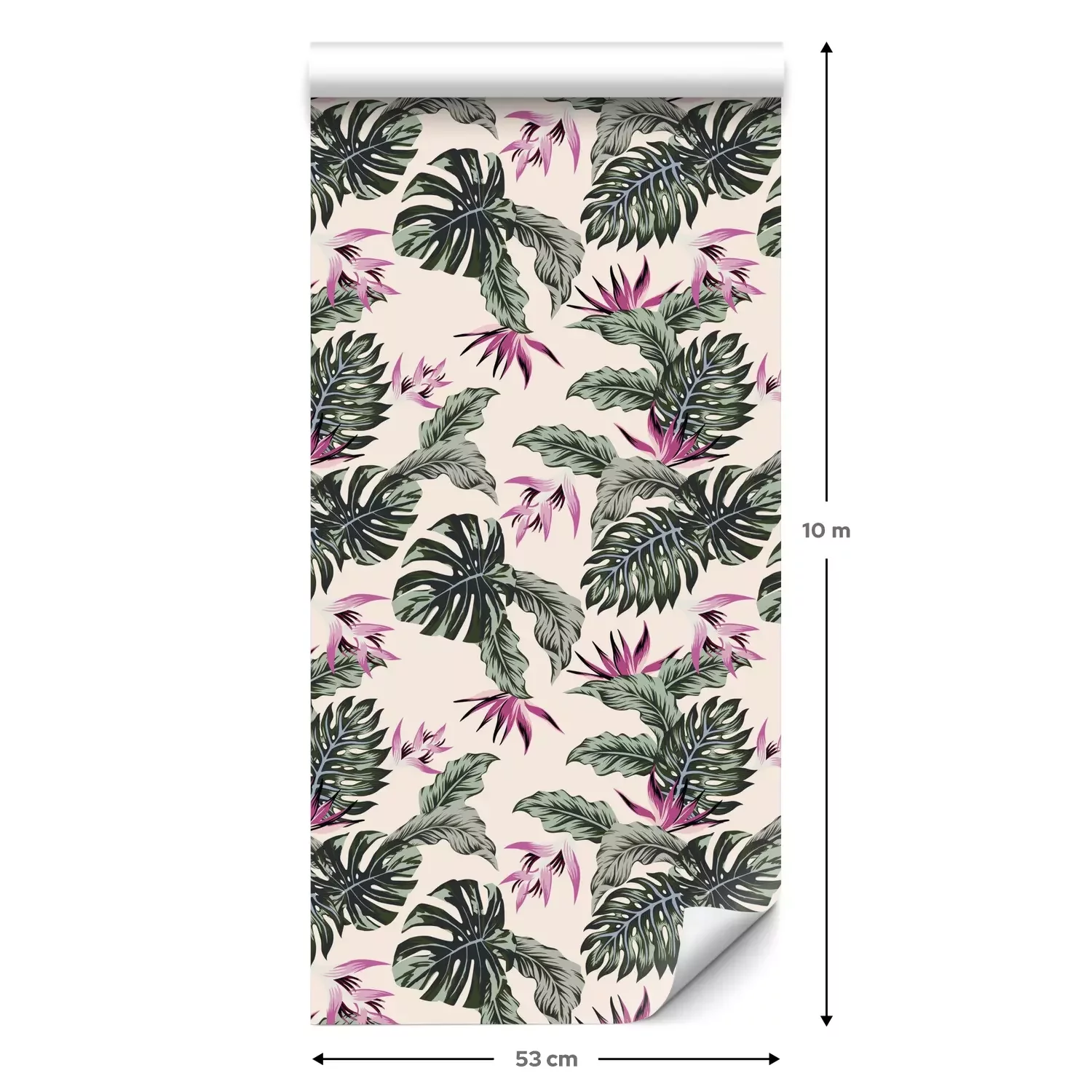 Eine Standard-Tapetenrolle hat die Maße 0,53 m x 10 m und deckt eine Wandfläche von etwa 5 m² ab.