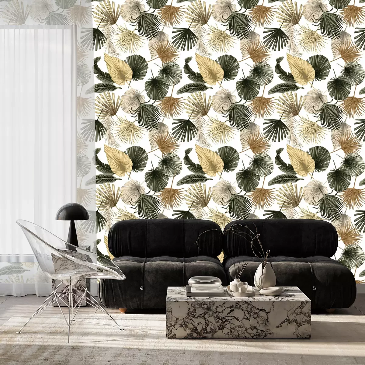 Palmenblätter auf leicht grauem HintergrundFototapete