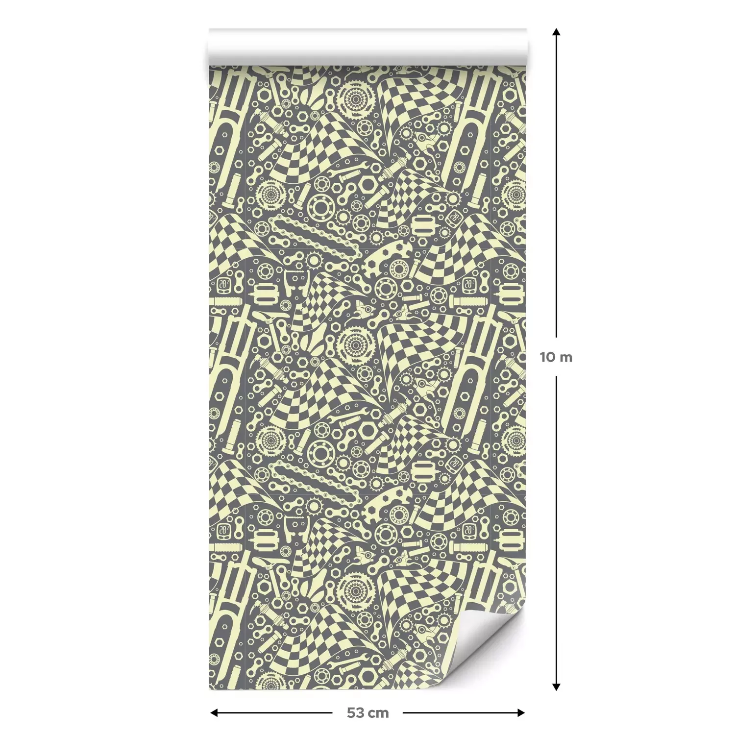 Eine Standard-Tapetenrolle hat die Maße 0,53 m x 10 m und deckt eine Wandfläche von etwa 5 m² ab.