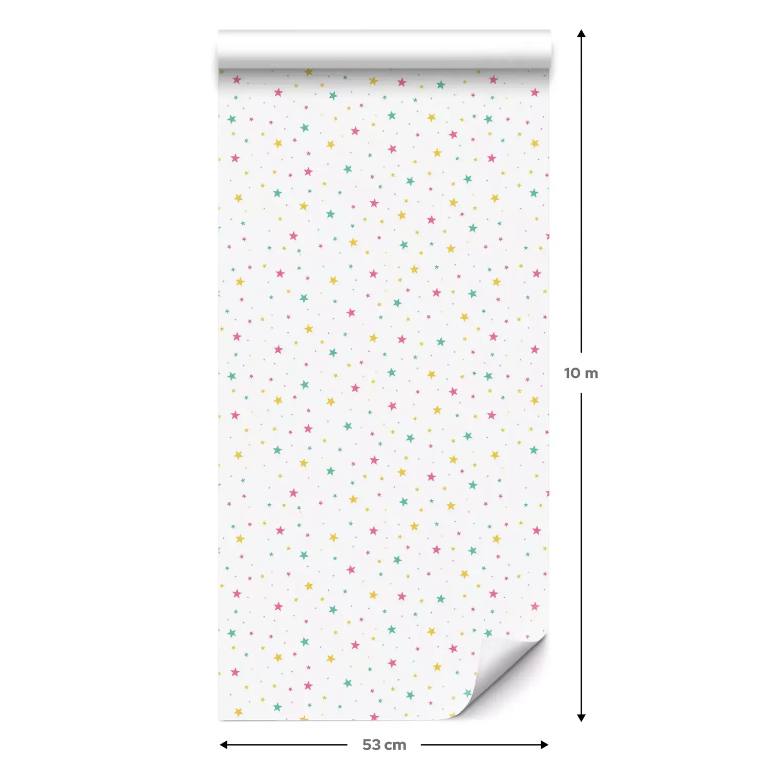 Eine Standard-Tapetenrolle hat die Maße 0,53 m x 10 m und deckt eine Wandfläche von etwa 5 m² ab.