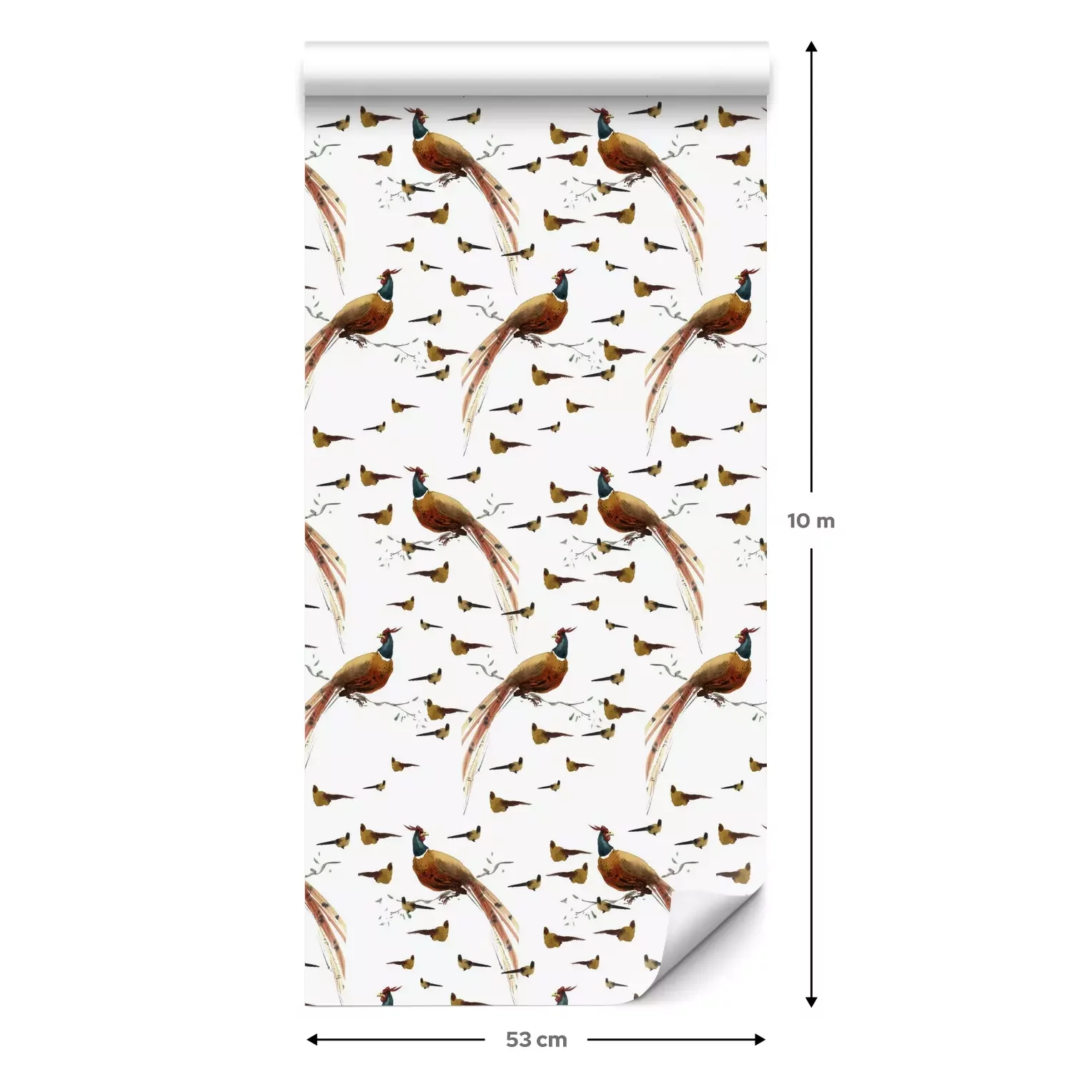 Eine Standard-Tapetenrolle hat die Maße 0,53 m x 10 m und deckt eine Wandfläche von etwa 5 m² ab.