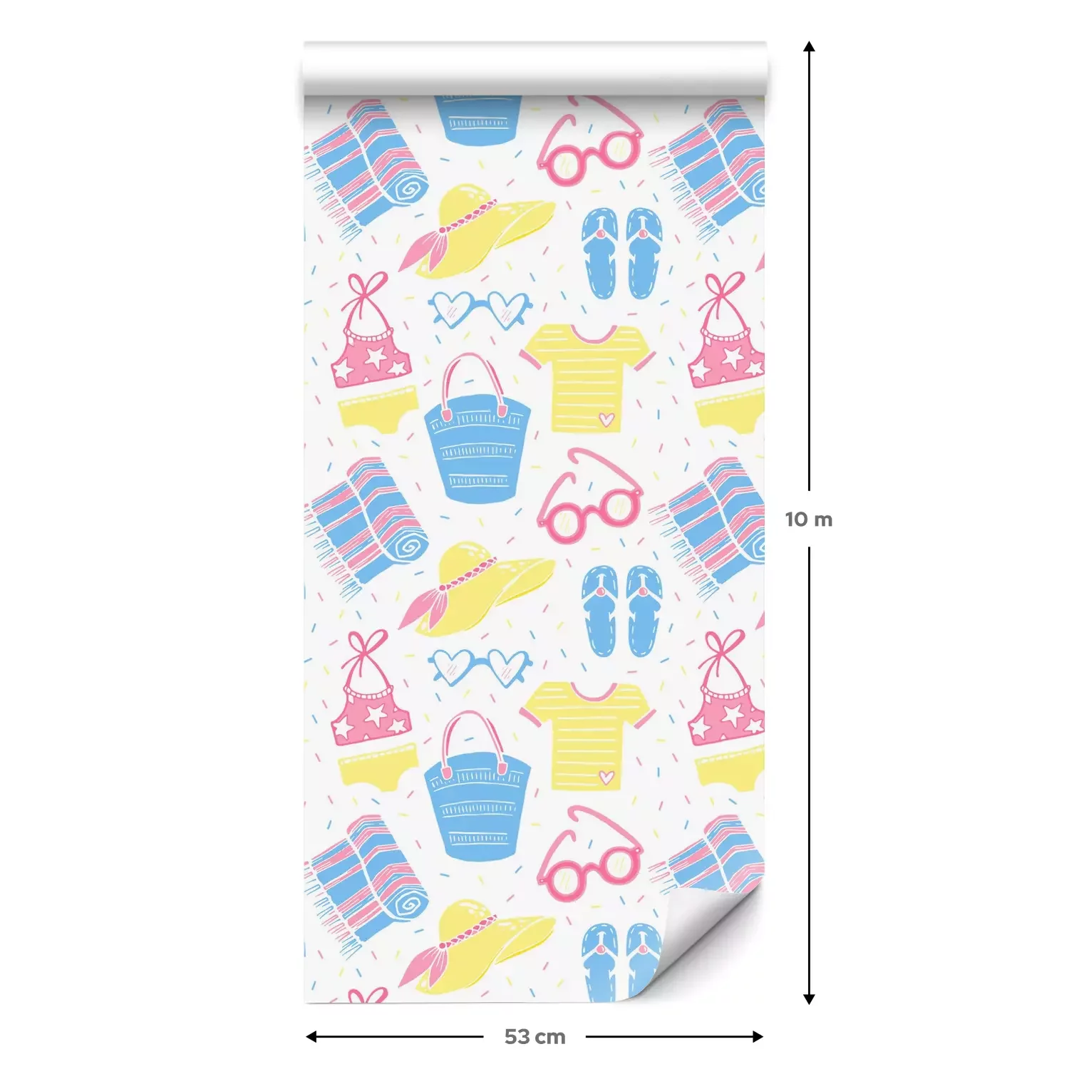 Eine Standard-Tapetenrolle hat die Maße 0,53 m x 10 m und deckt eine Wandfläche von etwa 5 m² ab.